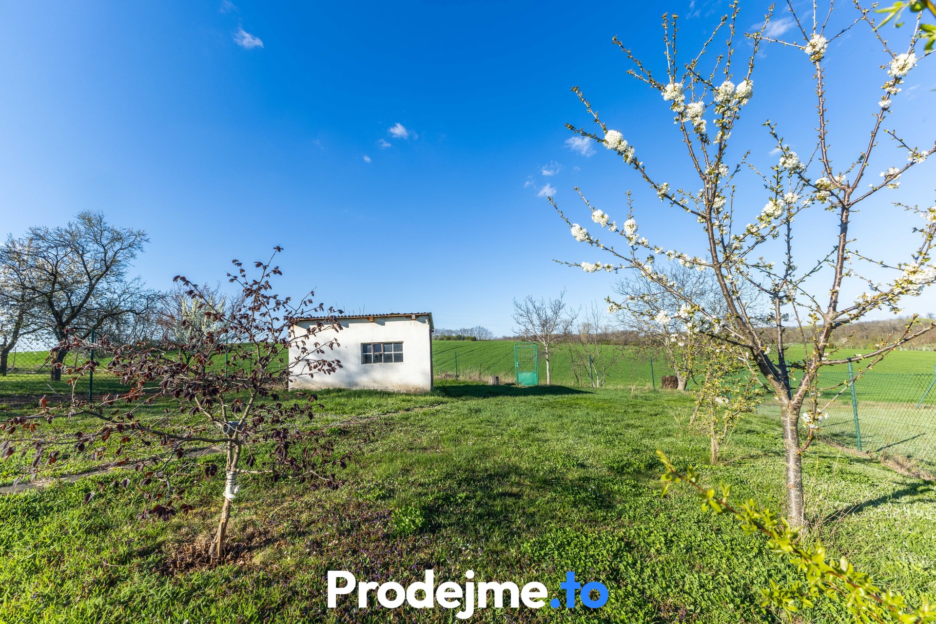 Druhou část pozemku tvoří klidová zóna. Je to rovinatá, zatravněná zahrada, která se na svém konci otevírá směrem k polím a přírodě. K bezpečnému uskladnění sekačky a dalšího zahradního nářadí tu skvěle poslouží zděná kůlna, která stojí na samotném okraji pozemku.