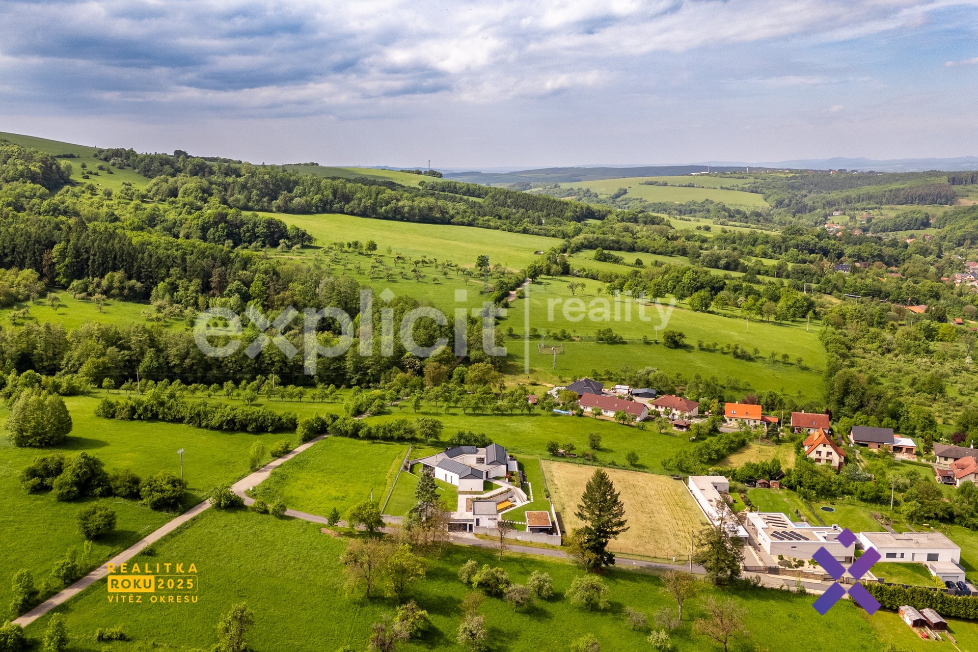 Nedaleko nad domem se nachází již zpevněná polní cesta, která vybízí ke klidným vycházkám a relaxaci s nádherným výhledem na protější zalesněné kopce. Nedaleko se rozprostírá les, což z pozemku činí ideální místo pro milovníky klidu a přírody.