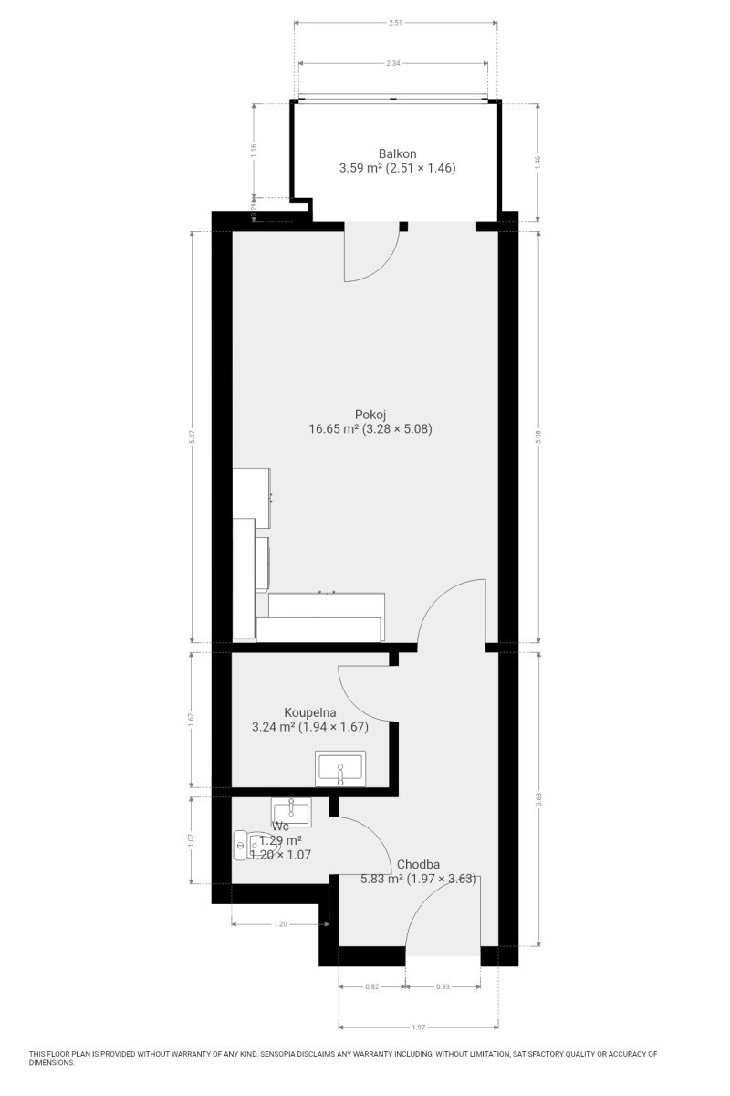 - Celková podlahová plocha: 29 m²