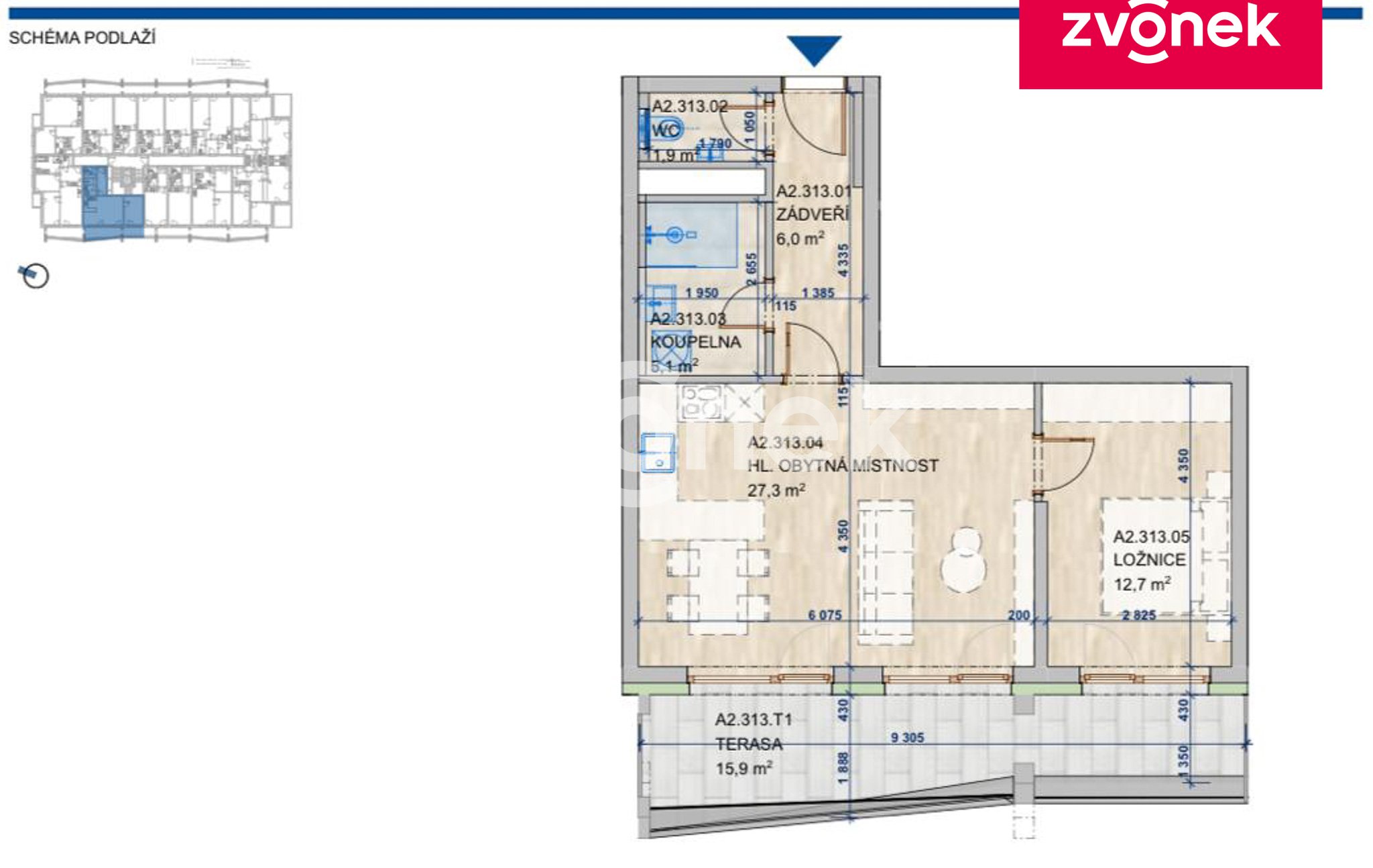 | Dispozice/podlahová plocha: | 2+kk/55 m² |