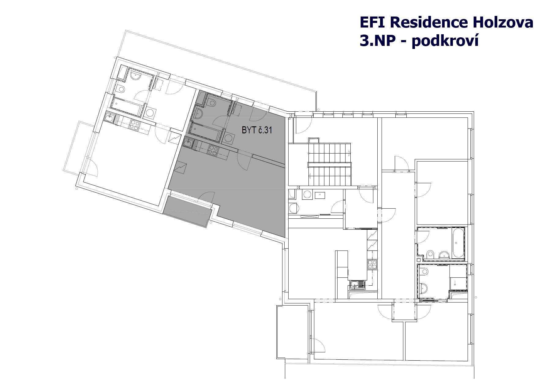 EFI Residence Holzova 28, novostavba 1+kk s lodžií v Brně-Líšni