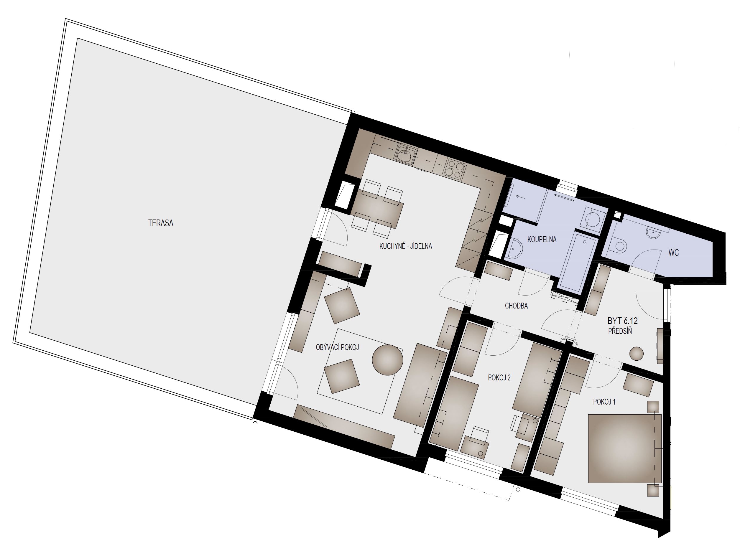 EFI Residence Holzova 28, novostavba 3+kk s terasou v Brně-Líšni