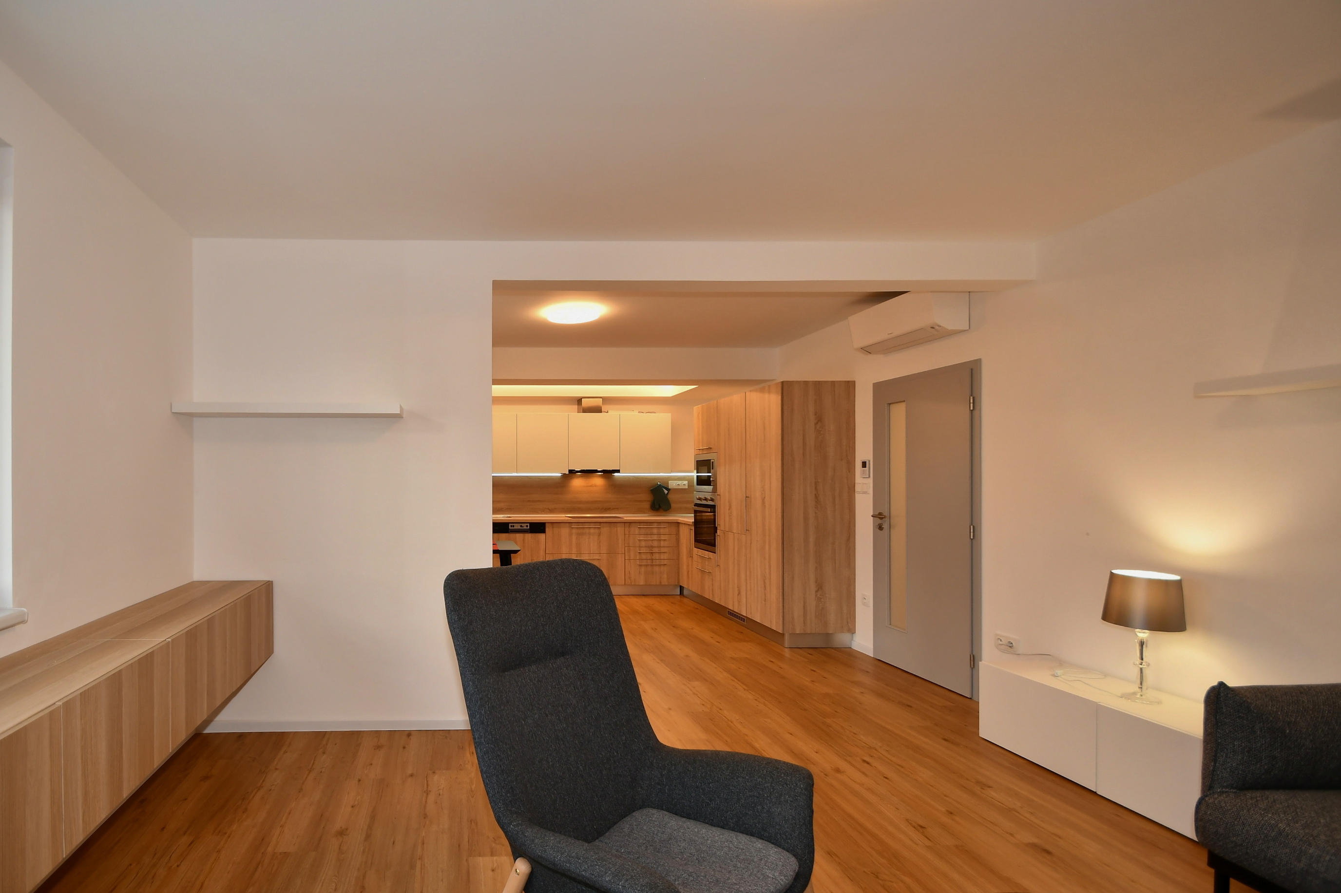 Vybavení: kuchyňská linka se spotřebiči, AC Daikin, podlahové topení Baxi, Smart Home Siemens, žaluzie VEKRA