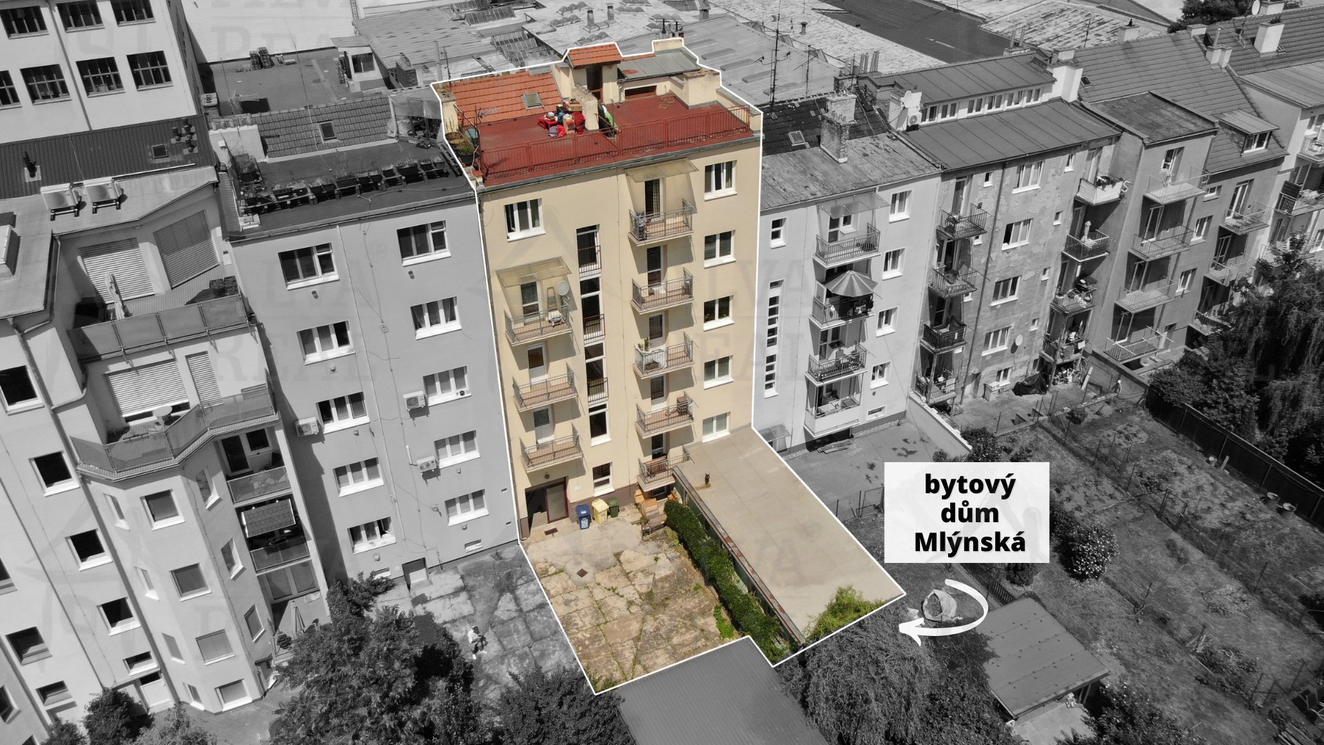 Dům se nachází v centru Brna, na ul. Mlýnská, která prošla v 2024 rekonstrukcí. V blízkosti MHD a dobrá dopravní dostupnost po celém Brně. Parkování možné v ulici. V okolí veškerá občanská vybavenost, školy, školky, hřiště v nově vybudovaném areálu Vlněna. V docházkové vzdálenosti jsou různé restaurace a obchody, například Lidl, Žabka nebo nákupní centrum Galerie Vaňkovka.