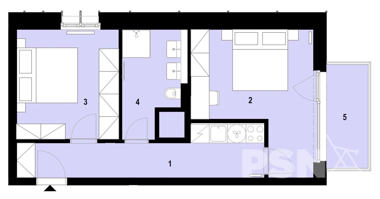 Dispozice 2+1 a celková plocha 47,3 m² ve 2. podlaží poskytují promyšleně řešený prostor, který je ideální jak pro investiční účely, tak pro budoucí vlastní bydlení. Jednotka nabízí dva neprůchozí pokoje, kuchyň, elegantní koupelnu se sprchovým koutem a WC a navíc na východ orientovaný balkon, díky čemuž je byt krásně prosvětlený po celý den.
