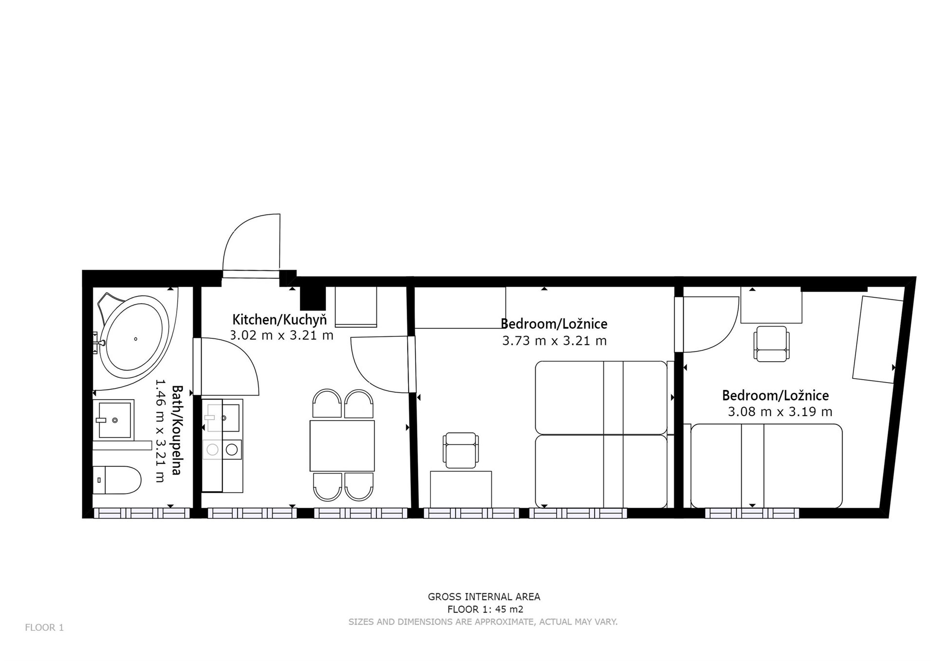 - Dispozice bytu: 2+1