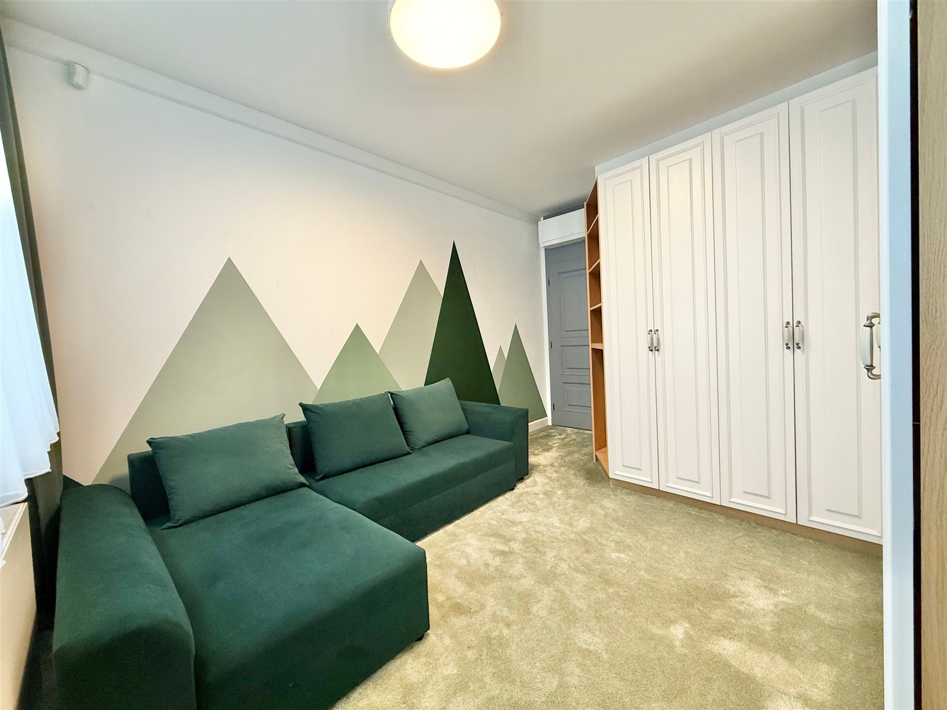 Byt disponuje ložnicí s luxusní postelí, vestavěnými šatními skříněmi, TV a klimatizací, druhým pokojem s vestavěnými skříněmi, rozkládacím gaučem a klimatizací (vhodný jako pracovna, dětský pokoj či pokoj pro hosty). Koupelna nabízí sprchový kout i vanu, dvě umyvadla, úložné skříňky a toaletu. V celém bytě jsou elektrické žaluzie s možností ovládání manuálně i přes mobilní aplikaci.