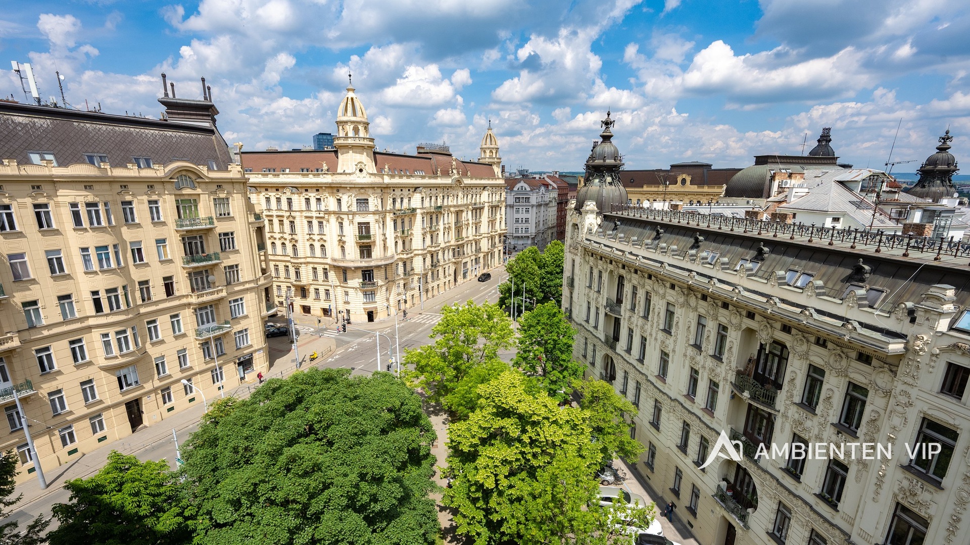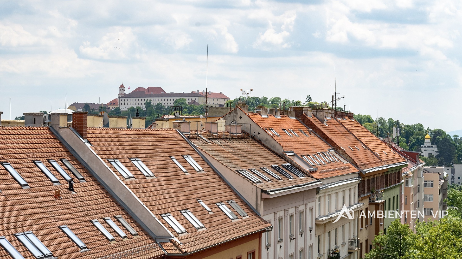 Mezonetový byt o velikosti 209,4 m² s výhledy na secesní domy Tivoli – ul. Čápkova/Úvoz, Brno – Stře