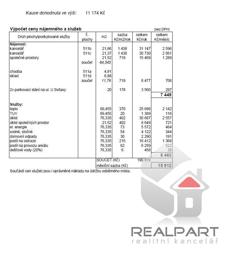 | Poznámka: | + záloha na služby 8.463 Kč , uvedené ceny jsou bez DPH |