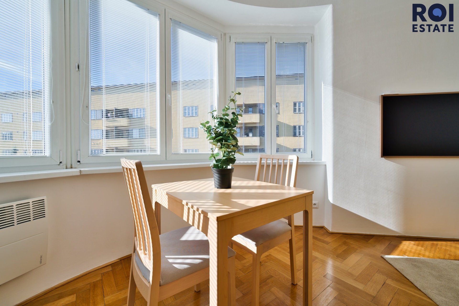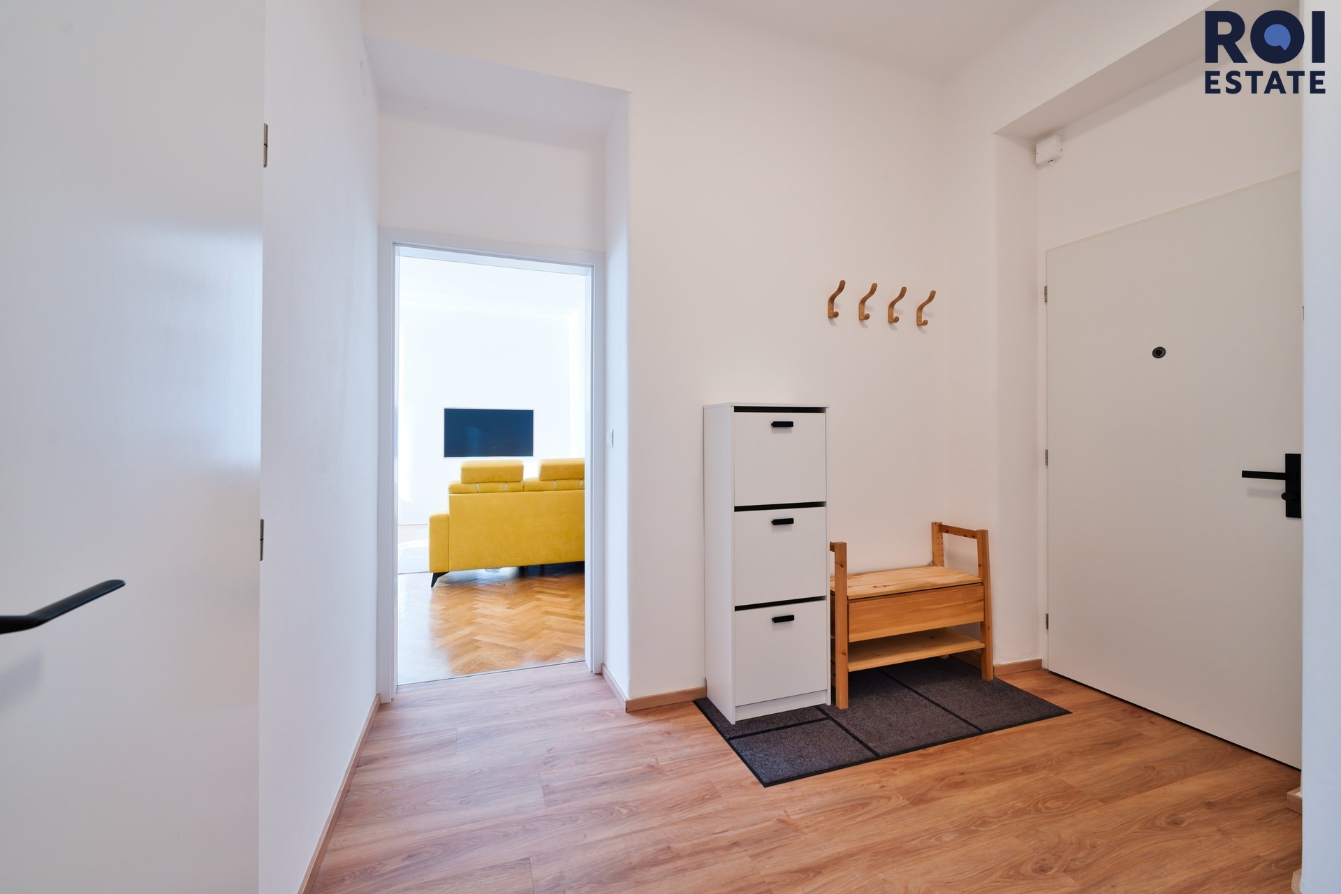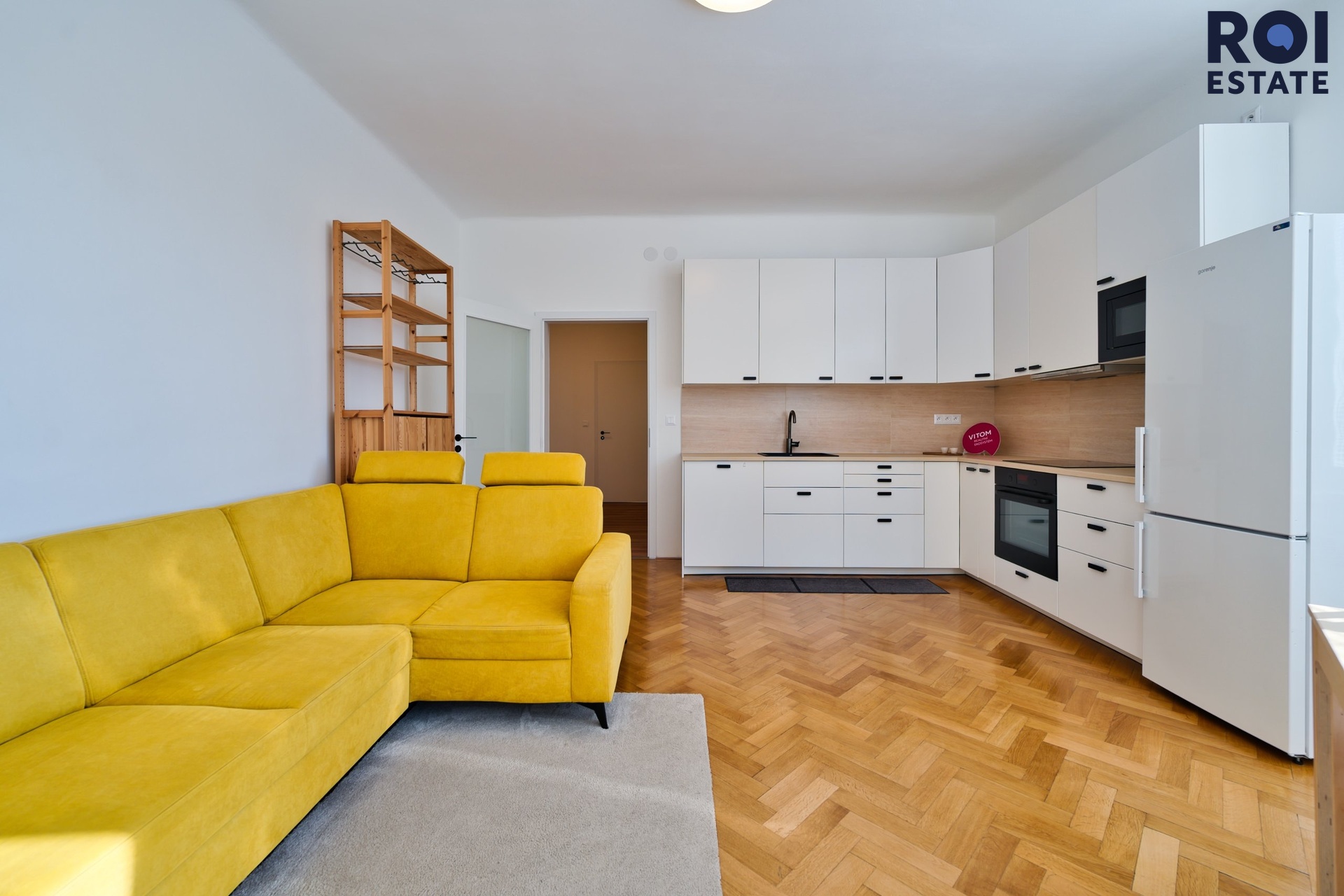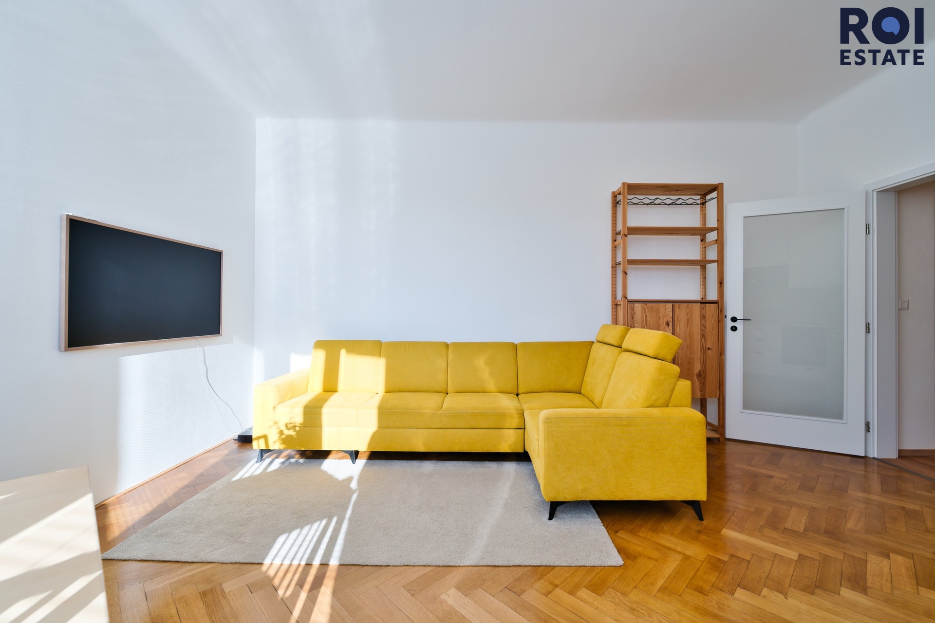 Byt je zařízen ve světlých přírodních tónech, což podtrhuje jeho vzdušnost a prosvětlenost díky velkým oknům. V bytě zůstává veškerý nábytek, který je součástí fotografií, a který vytváří příjemný a moderní interiér.