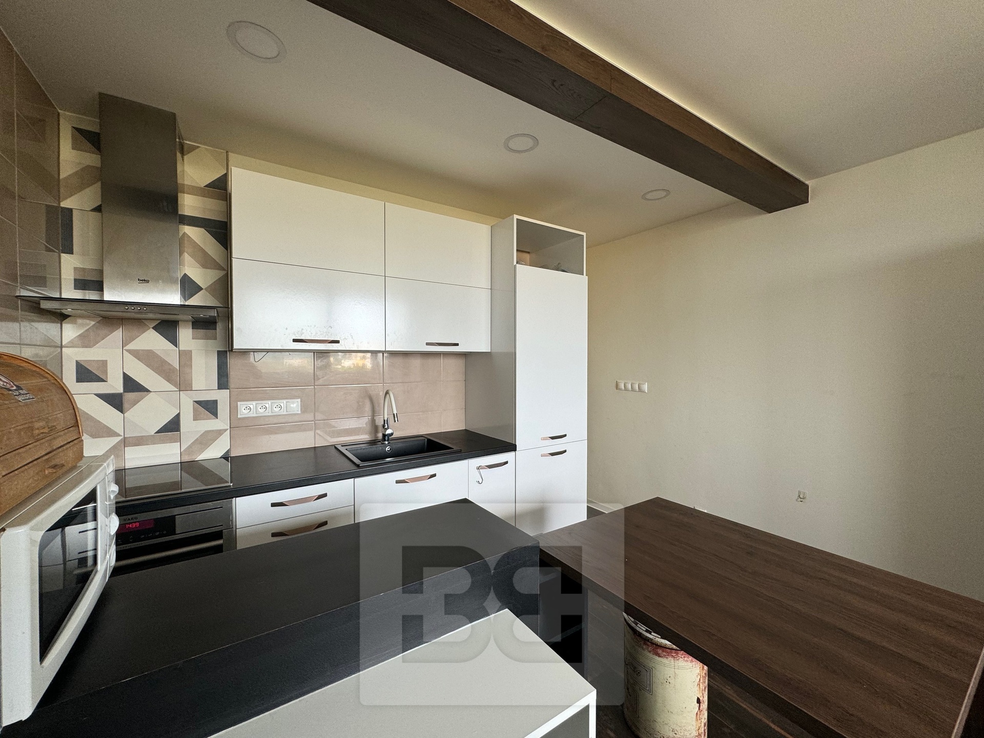 Ve výhradním nabízíme k podnájmu zrekonstruovaného bytu1+kk v Brně - Žabovřeskách. Byt se nachází na ulic Vychodilova v 12.NP s výtahem. Byt o celkové velikosti 25m2 včetně balkonu, odkud je krásný výhled do okolí. Obývací část je vybavena jídelním stolem s židlemi, komodami, sedačkou a skříní. V kuchyni je lednice, mrazák a el. sporák, trouba, digestoř i myčka. Opravdu velmi dobře a pěkně vybaveno a zařízeno. Zajimvě je řešeno i osvětlení bytu, které navodí krásnou atmosféru večer. Součástí koupelny je sprchový kout, WC a pračka. V bytě jsou nové plovoucí podlahy s kombinací s dlažbou v koupelně a předsíni. Byt prošel kompletní rekonstrukcí včetně podkladů, elektřiny a nových stěn. K bytu náleží sklepní kóje o vel. 2,5m2.