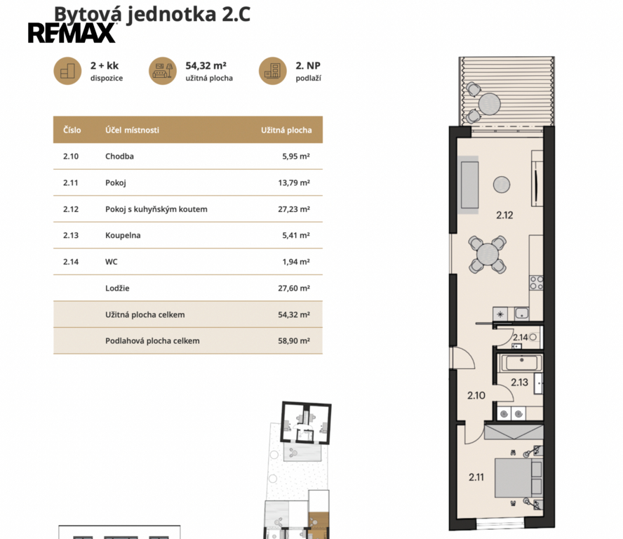 | Dispozice/podlahová plocha: | 2+kk/59 m² |