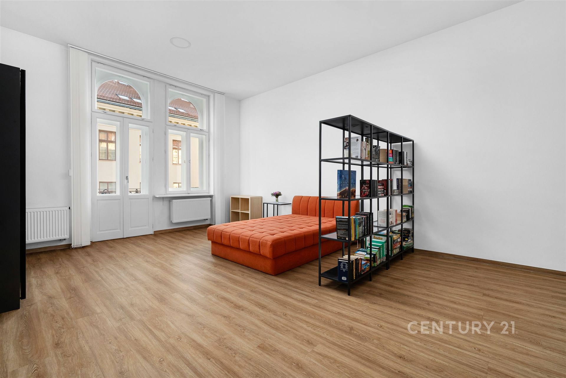 Interiér prošel kvalitní rekonstrukcí a je ve velmi dobrém technickém stavu. Vysoké stropy, nové podlahy, moderní osvětlení a dřevěné obložkové dveře podtrhují celkově elegantní a nadčasový charakter bytu. Byt se prodává kompletně vybavený, včetně kuchyně, skříní a většiny nábytku z fotografií, s výjimkou malého stolku a křesílek v kuchyni, což umožňuje okamžité nastěhování nebo rychlé zahájení pronájmu bez dalších investic.