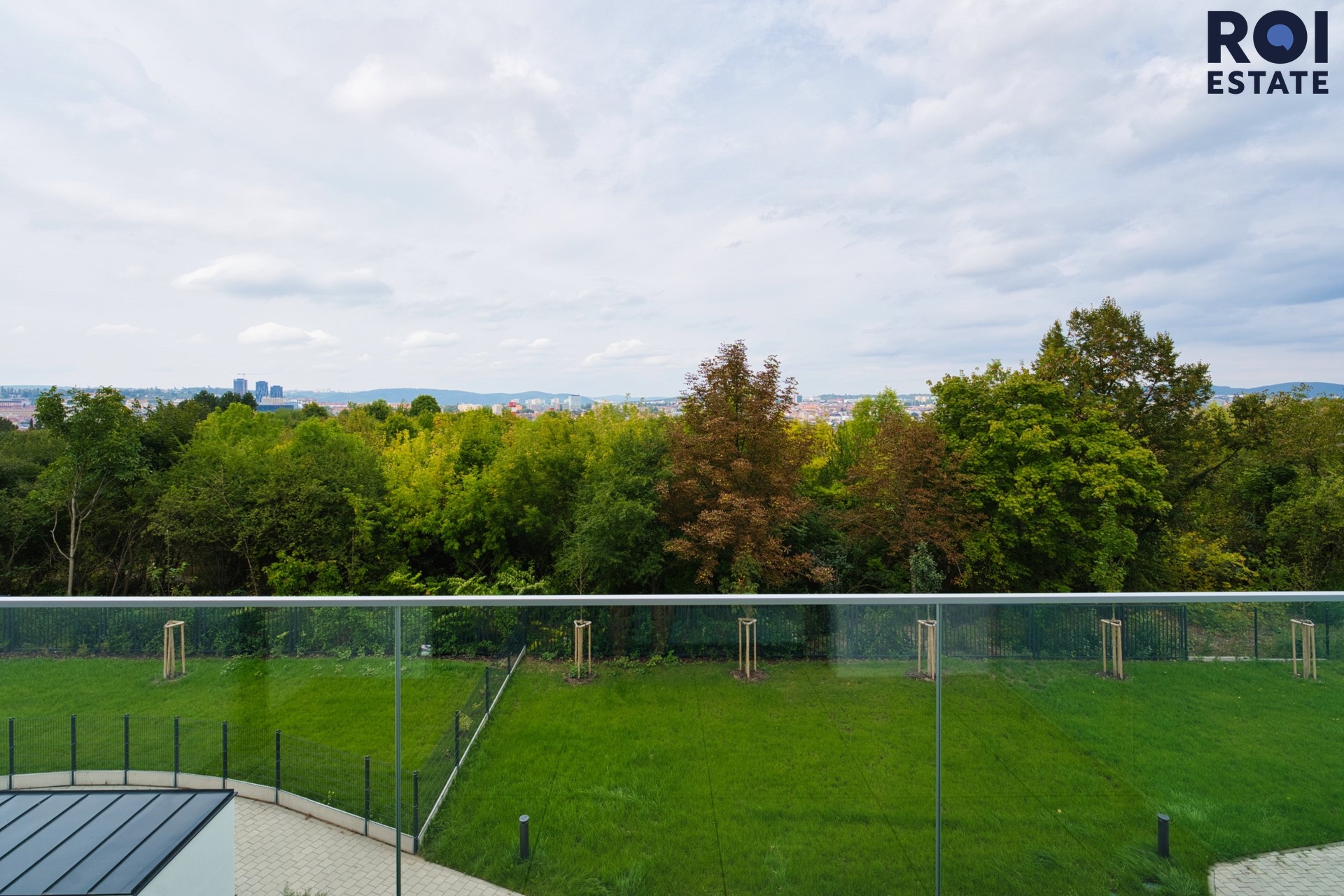 Z balkonu se díváte přímo do korun stromů - příjemné soukromí, přirozený stín v létě a kulisa, která zklidní i ten nejhektičtější den.