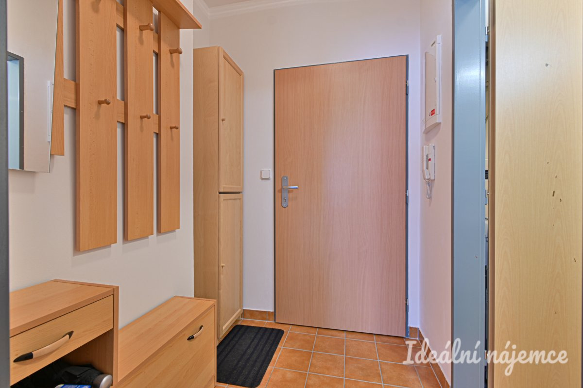 Interiér bytu je ve velmi dobrém stavu a nabízí vybavení, které vám usnadní počáteční zabydlování, zatímco stále ponechává prostor pro vaše vlastní nápady a doplňky. Kuchyně je zařízena lednicí, mikrovlnnou troubou, digestoří a sporákem. Zbytek místnosti je vybaven jídelním stolem se židlemi a sedačkou, dále manželskou postelí a úložným prostorem. Koupelna disponuje sprchovým koutem, toaletou, umyvadlem a pračkou. Velkým benefitem je vlastní balkon, který je jako stvořený pro ranní kávu nebo večerní relaxaci. K bytu náleží také praktický sklep pro uložení sezónních věcí.