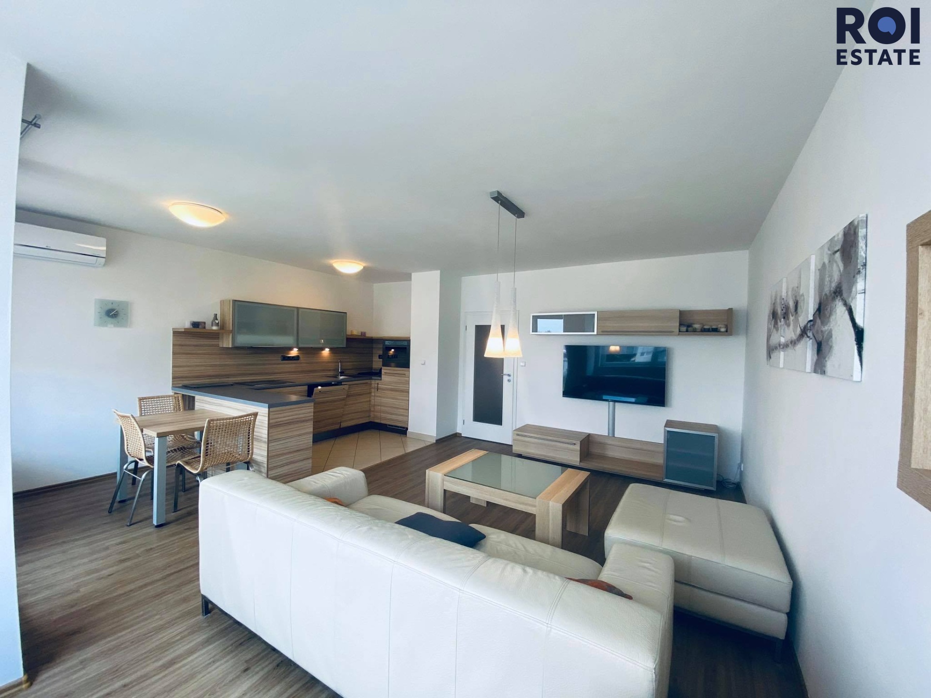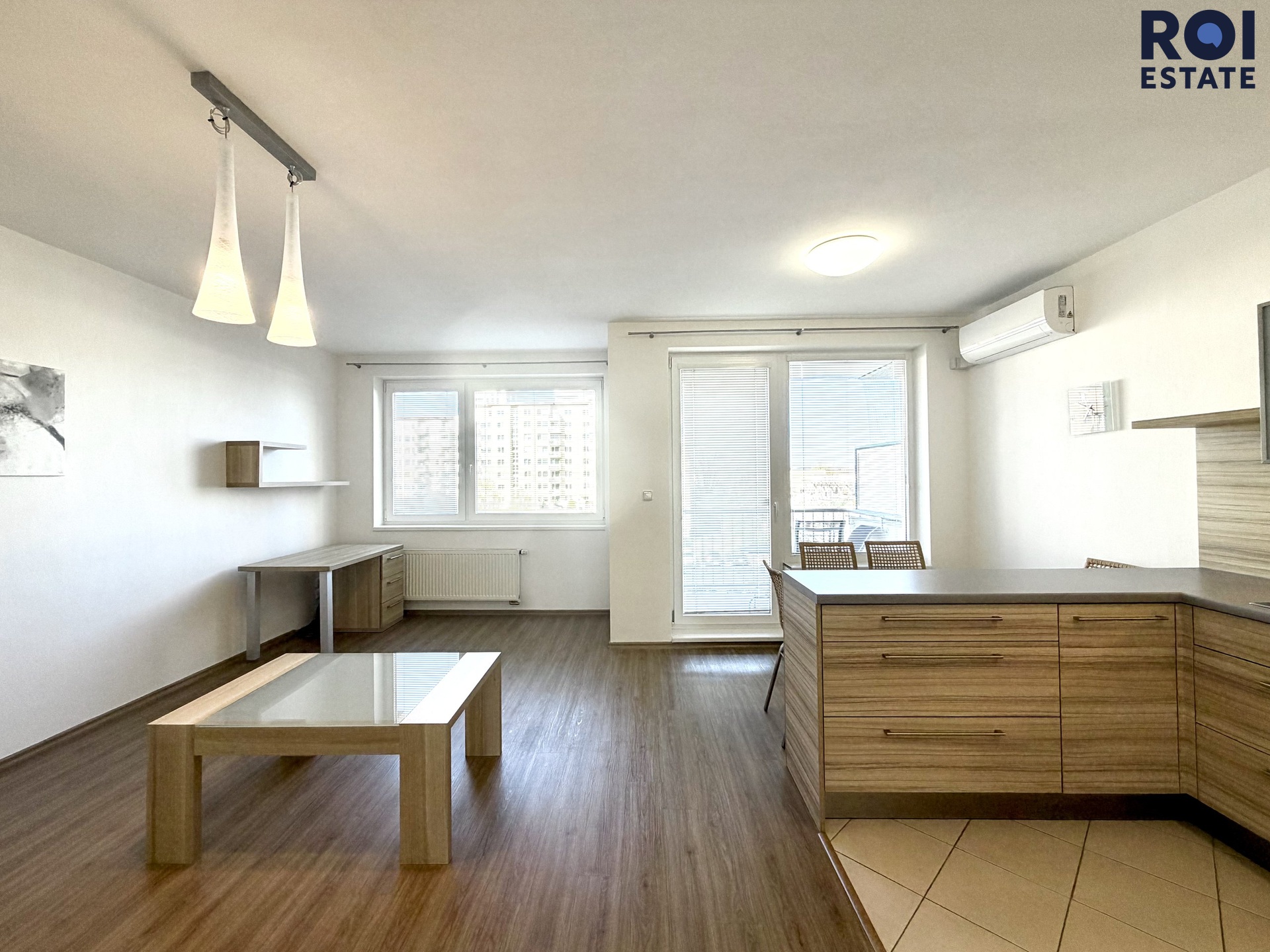Byt o dispozici 3+kk se nachází ve 3. NP v moderně zařízené čtvrti na ulici Dusíkova, Brno - Lesná. Při příchodu do bytu Vás přivítá prostorná chodba s vchodem do obývajícího pokoje s kuchyňským koutem. Z této chodby také vedou samostatné vstupy do šatny, pokojů, koupelny a toalety. V rozlehlém obývacím pokoji, který je klimatizován nalezneme také vstup na balkon, kde je posezení pro Váš odpočinek.