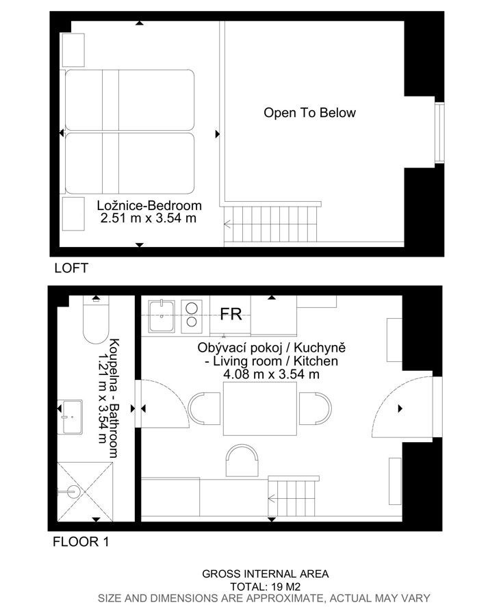 | Dispozice/podlahová plocha: | 1+kk/20 m² |