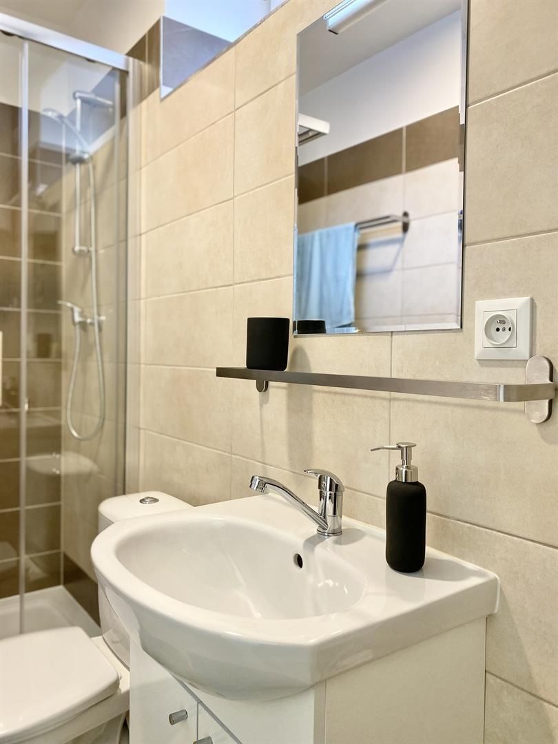 Jedná se o podnájem kompletně vybavené jednotky o dispozici 1+kk v zrekonstruovaném domě. Součástí vybavení kuchyně je plně zařízený kuchyňský kout, včetně lednice, sklokeramické desky, mikrovlnné trouby, varné konvice, digestoře a dřezu. Jednotka je vybavena pracovním stolem se židlemi, dvěma postelemi s nočními stolky a dostatečným prostorem na ukládání oblečení. Koupelna je také plně vybavená, a to sprchovým koutem, záchodem a umyvadlem se zrcadlem. K dispozici je příprava pro připojení vlastní pračky.
