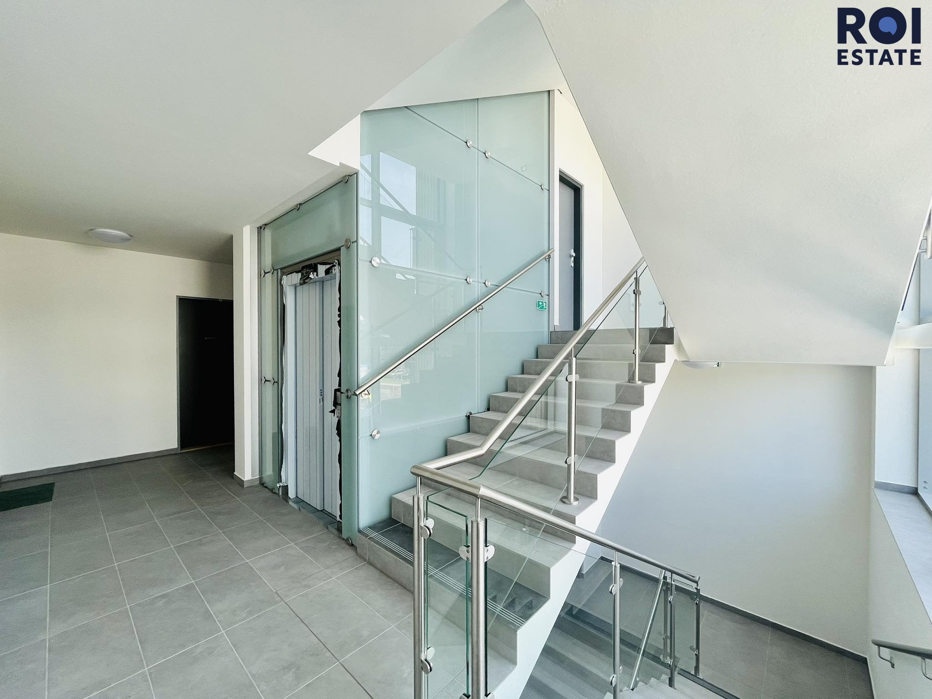 Již samotná budova Vás nadchne designem a zpracováním. Jsou zde použity kvalitní materiály včetně okrasného dřeva nebo velkoformátová dlažba s tvrzeným sklem. Při vstupu do nemovitosti se ocitneme v předsíni, která nás dostane do celého bytu. Po levé straně je krásná koupelna se sprchovým koutem a toaletou, můžete zde umístit své spotřebiče jako je například pračka či sušička nebo obojí. V rámci velké podlahové plochy je samostatný pokoj s kuchyňským koutem vhodný jak pro sedačku, postel nebo dva pracovní stoly. Vše si můžete zařídit dle Vašich potřeb a představ. Fantazii se meze nekladou! Kuchyňská linka byla vyrobena na míru a jsou zde spotřebiče jako například lednice s mrazákem, troubou či myčkou. Indukční deska je samozřejmostí. Pokud máte starost o tom, že byste v bytě cítili teplo, tak se bát nemusíte. Okna jsou vybavena předokenními žaluziemi typu Z, které zajistí tepelný komfort v domácnosti. Největší výhodou jsou také chlazené stropy, kde si sami nastavíte teplotu, kterou v nemovitosti chcete mít. Už Vás tak teda nebude trápit nepohodlí, nemoci či bolavé klouby z klimatizace.