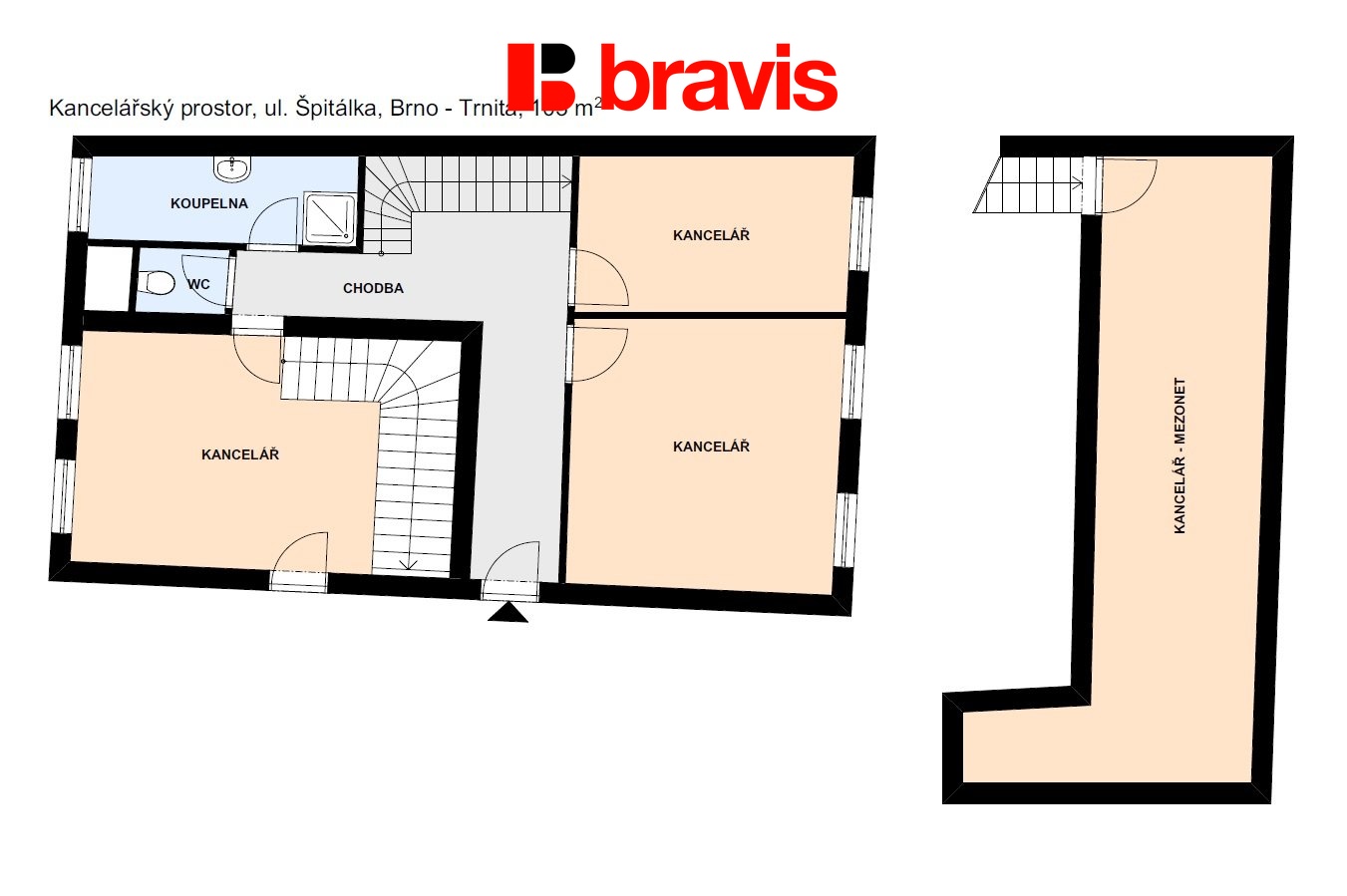 Podnájem mezonetových kancelářských prostor na ulici Špitálka, Brno - město, možnost služebního bytu