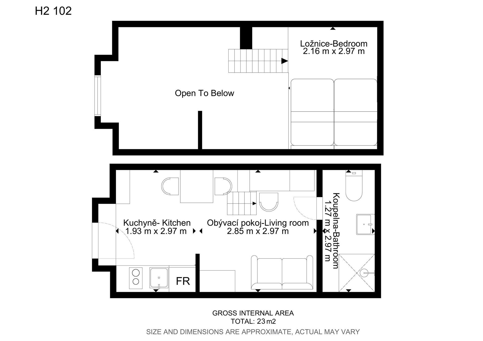 - Celková podlahová plocha: 23 m²