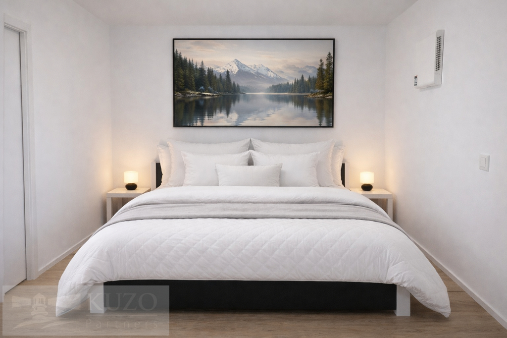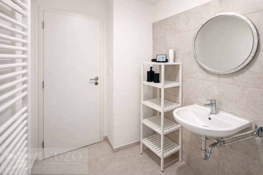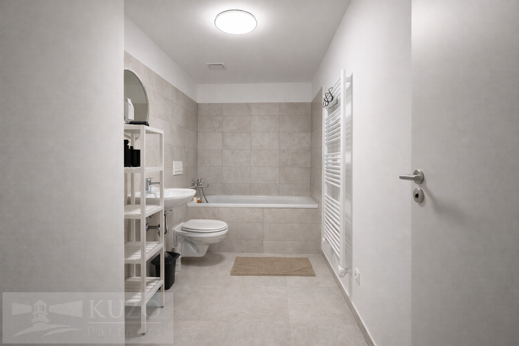 Celý prostor je laděn v čistém, moderním designu, který podtrhuje svěžest novostavby.