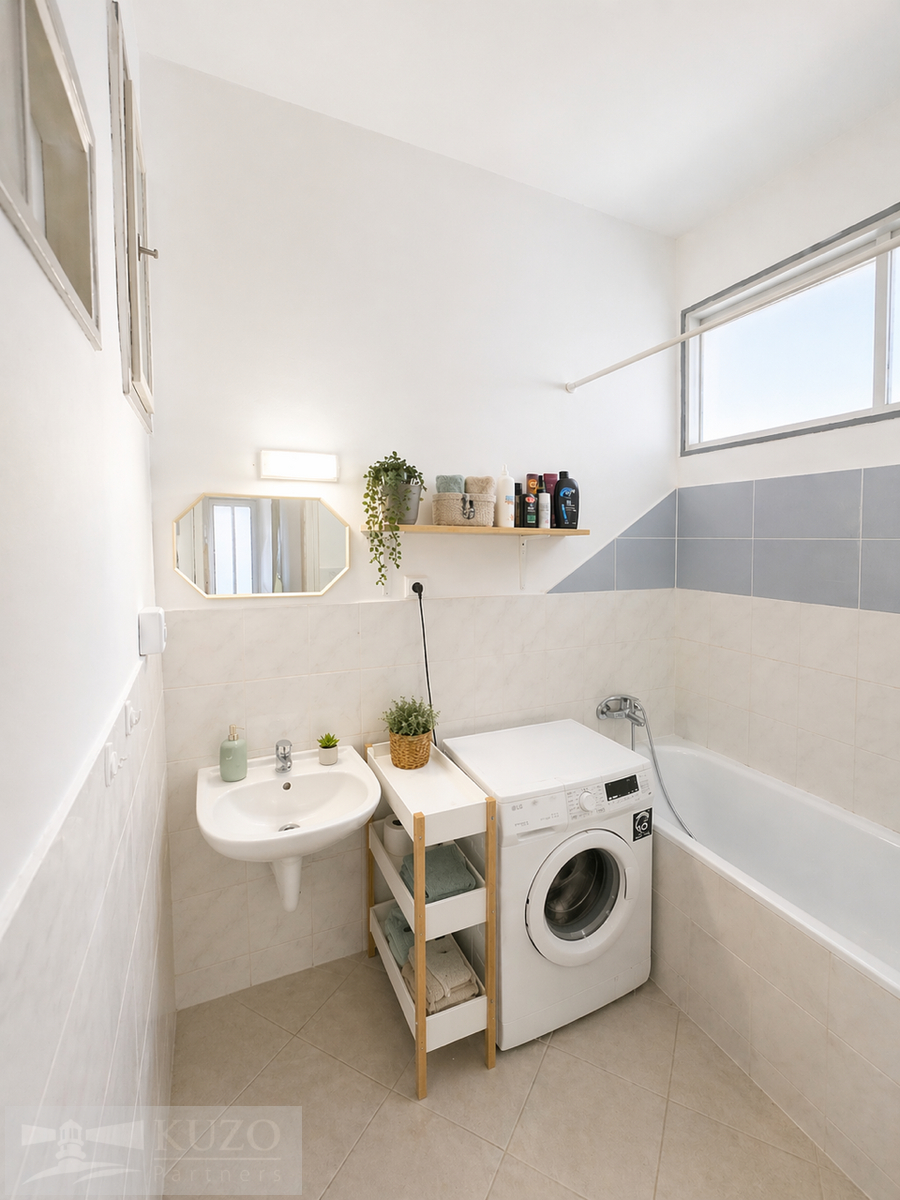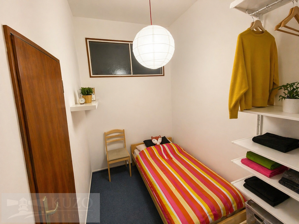 Byt je ideální pro skupinu 4–6 studentů a sestává ze čtyř neprůchozích pokojů a jednoho středového pokoje, který slouží jako společenská místnost. Dále je k dispozici samostatná kuchyně, koupelna s vanou a pračkou, samostatné WC a balkon (viz půdorys). K bytu nenáleží sklep.