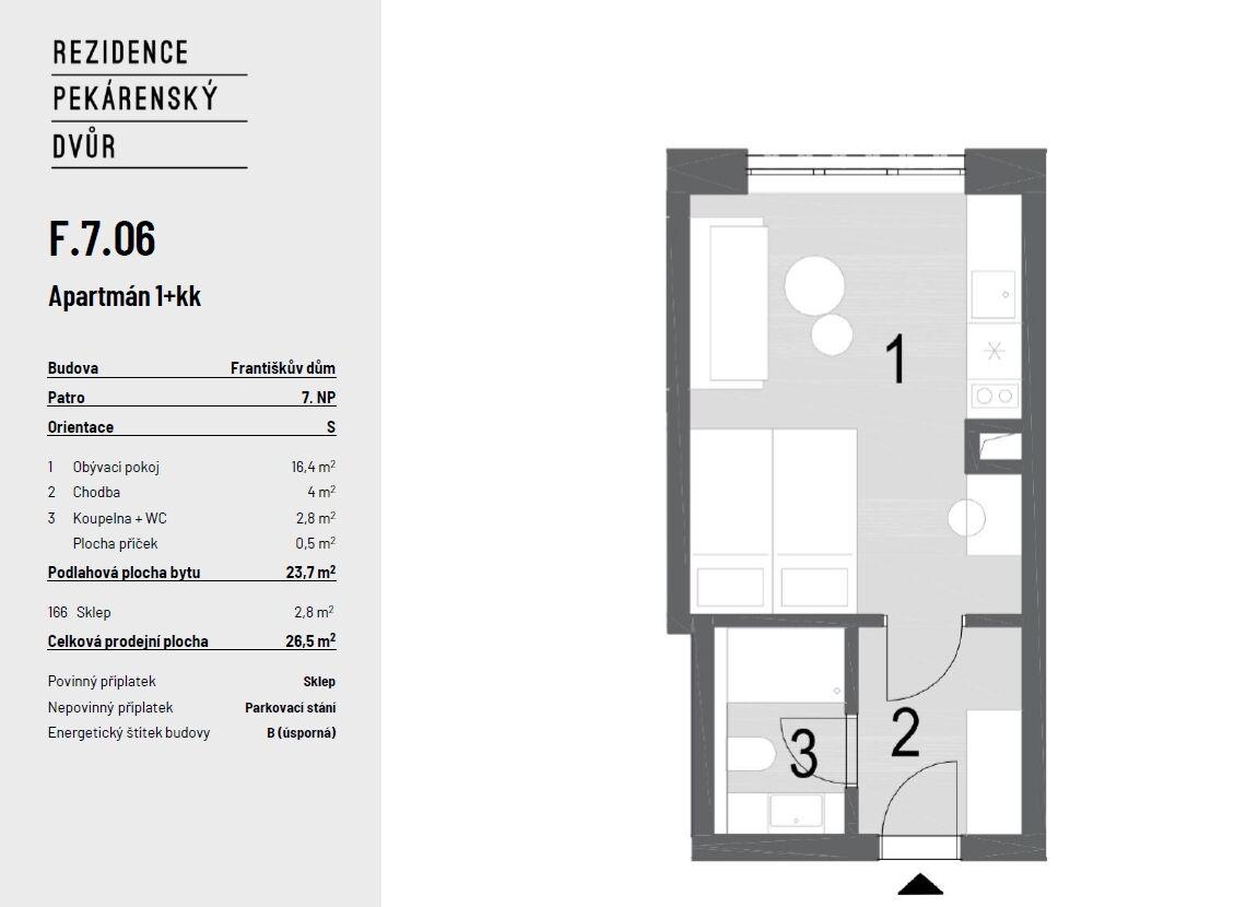 | Dispozice/podlahová plocha: | 1+kk/23 m² |
