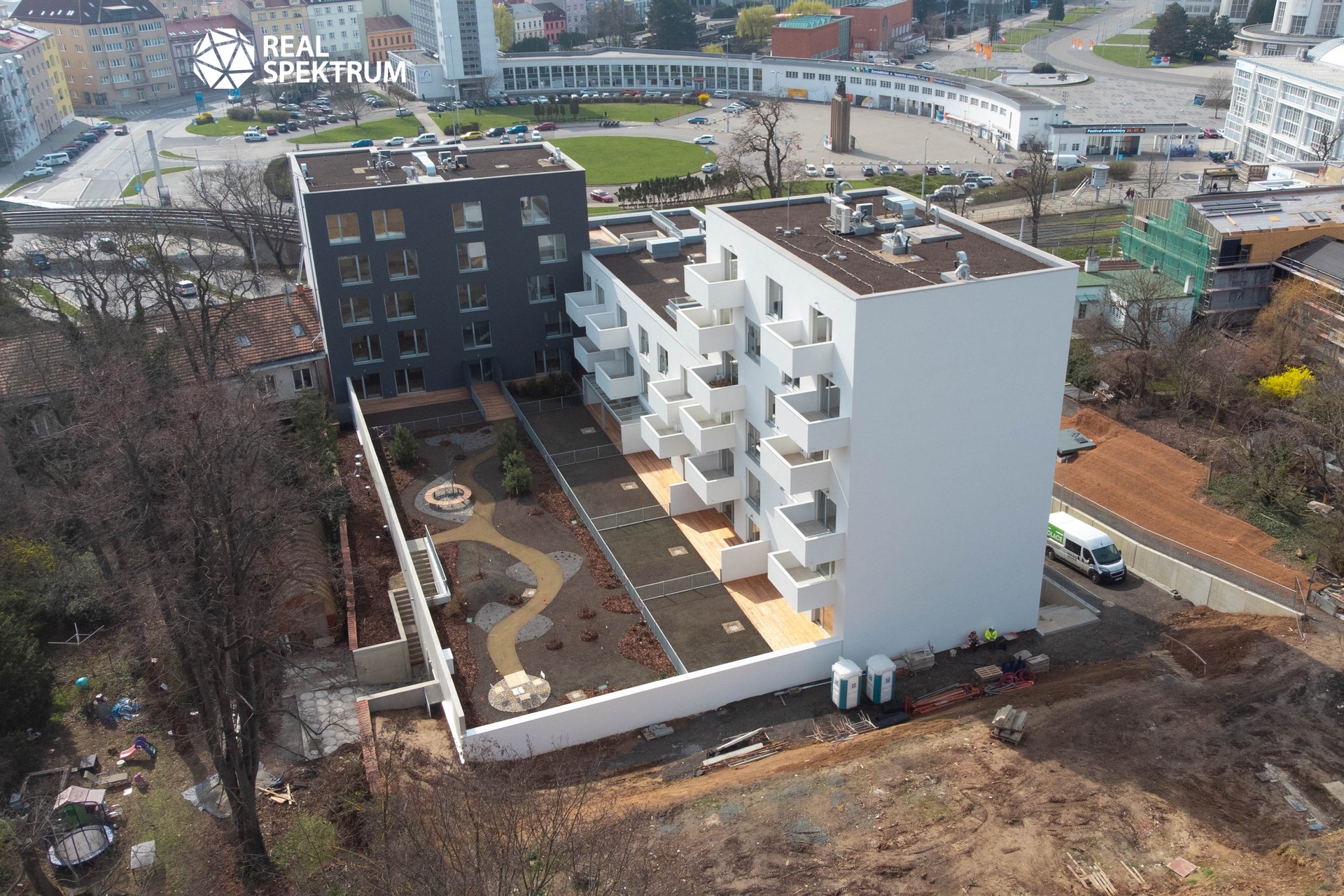 Rezidentům domu je k dispozici také společná kočárkárna a uzavřený vnitroblok se zelení, určený výhradně pro obyvatele domu.