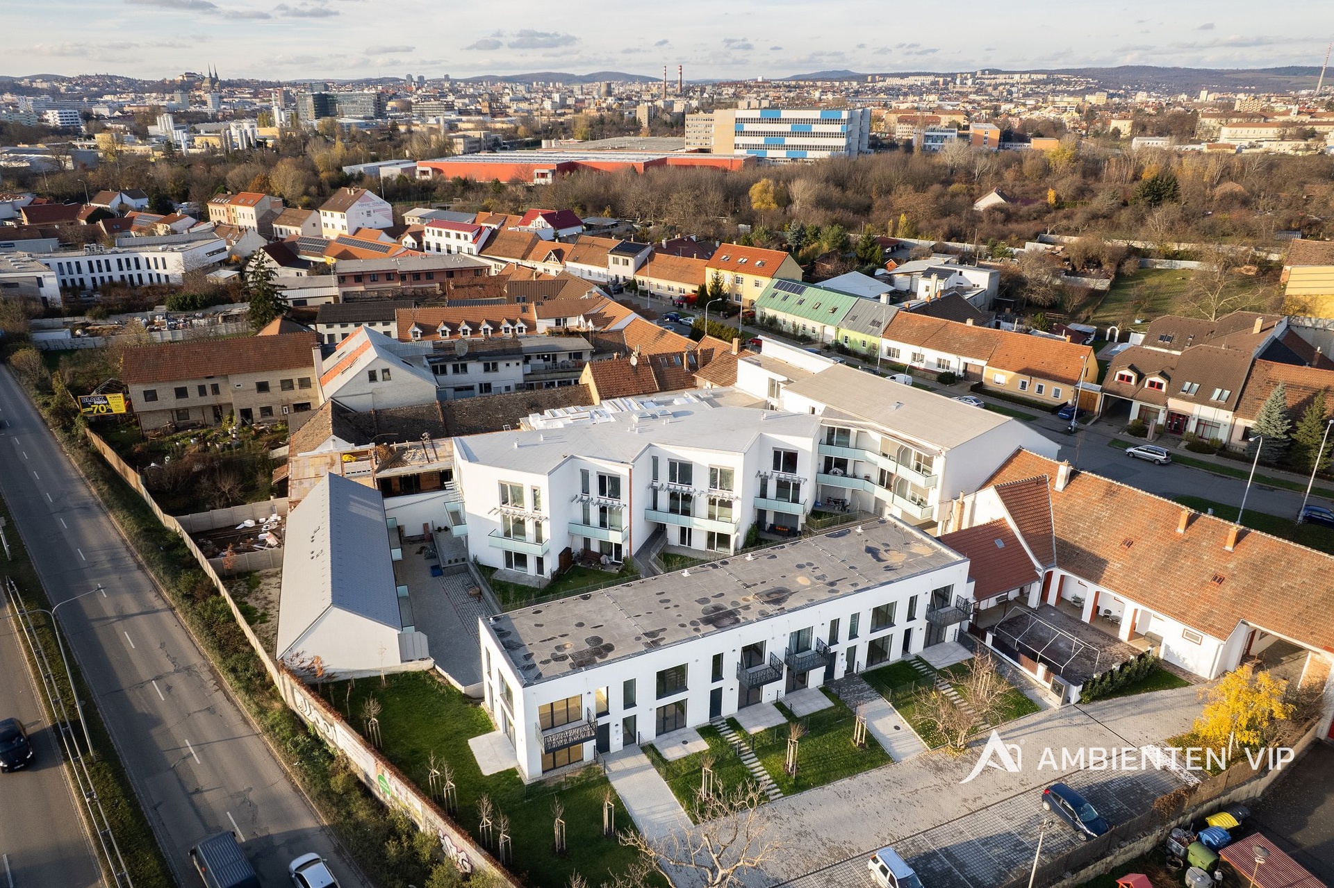 Městská část Brno – Černovice nabízí kompletní občanskou vybavenost – základní i mateřské školy, obchody, kavárny, restaurace, poštu, lékárnu, zdravotní středisko i sportoviště v pěší dostupnosti. Okolí nabízí mnoho možností k aktivnímu trávení volného času – Černovický hájek, nové parky, cyklostezky či dětská hřiště. Dopravní dostupnost je výborná, zastávka MHD je pár kroků od domu, centrum Brna autem za 7 minut a s dobrým napojením na dálnice D1 a D2.