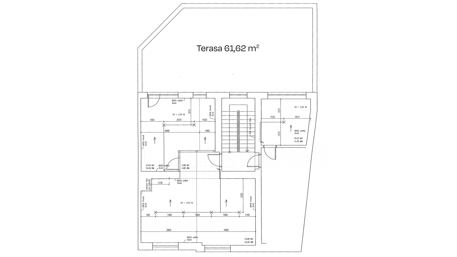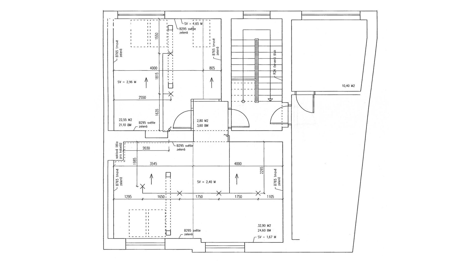 3.NP – 96,38 m2 – podkrovní kanceláře, serverovna, schodiště