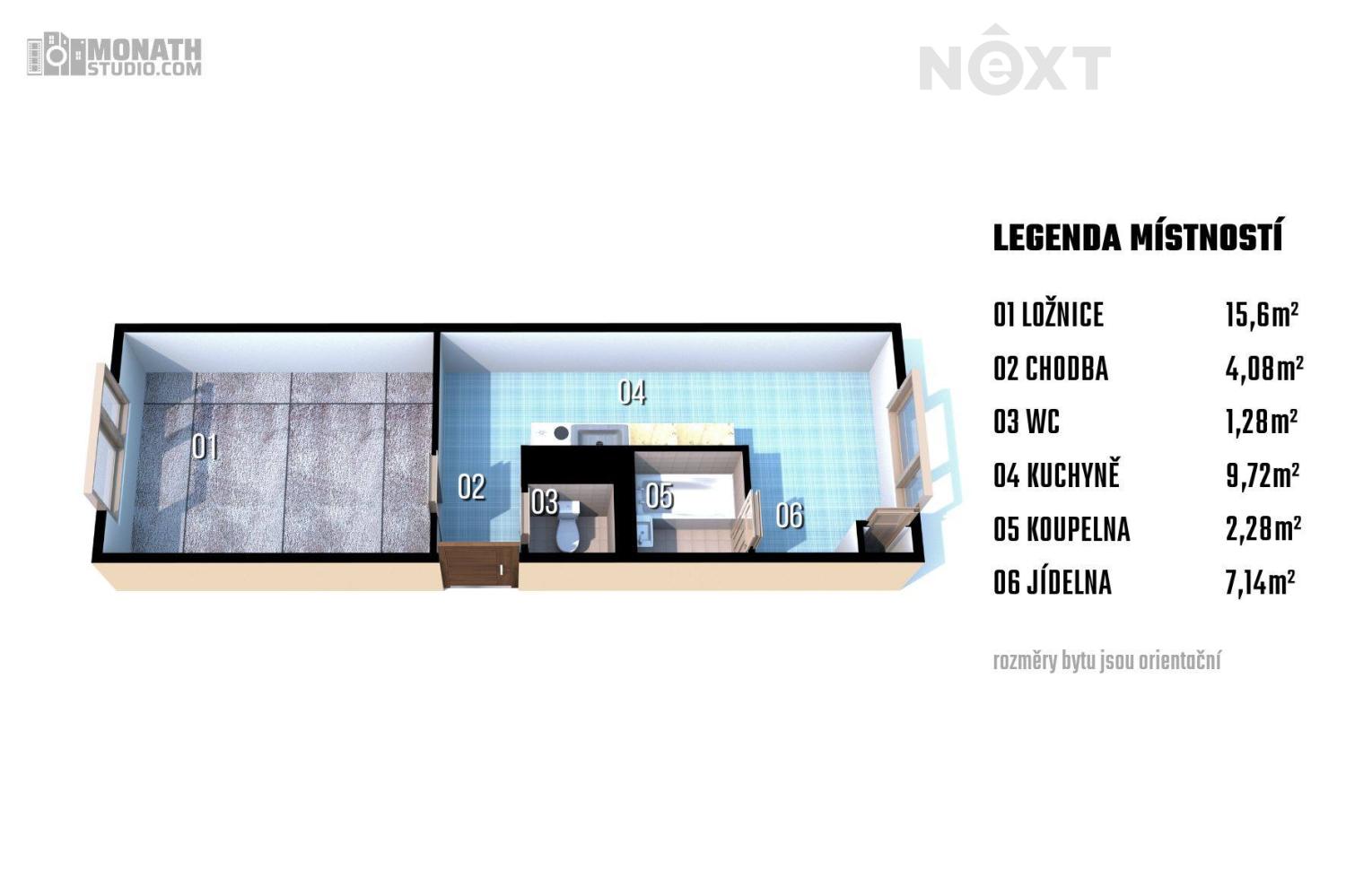 | Dispozice/podlahová plocha: | 1+1/38 m² |