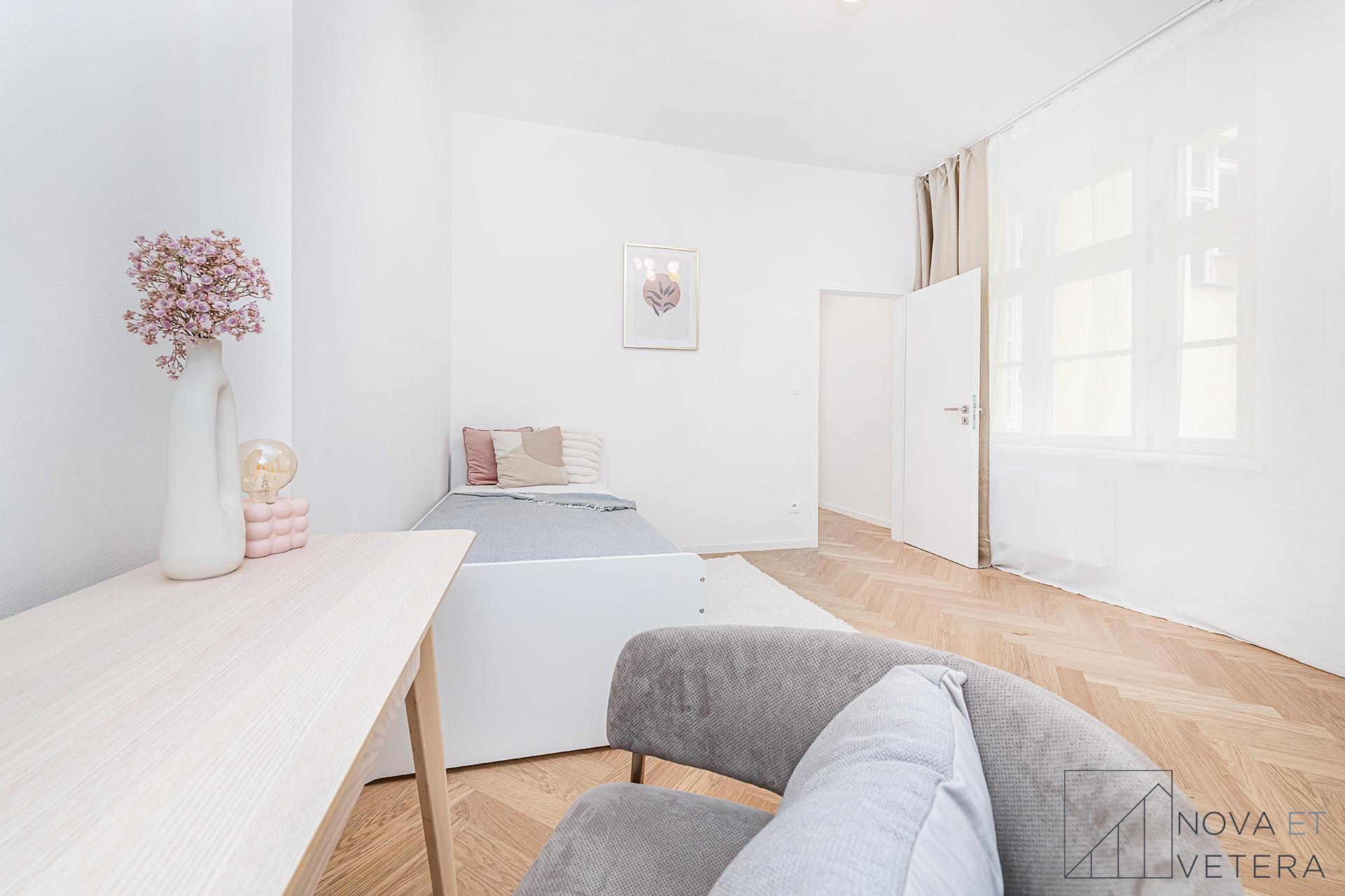 Vzhledem k probíhající rekonstrukci jsou fotografie bytu dočasně ilustrativní a pocházejí z již dokončeného projektu, nicméně odpovídají standardům této rekonstrukce. Rádi vám ukážeme dokončené referenční byty nebo i aktuální průběh rekonstrukce přímo na místě.
