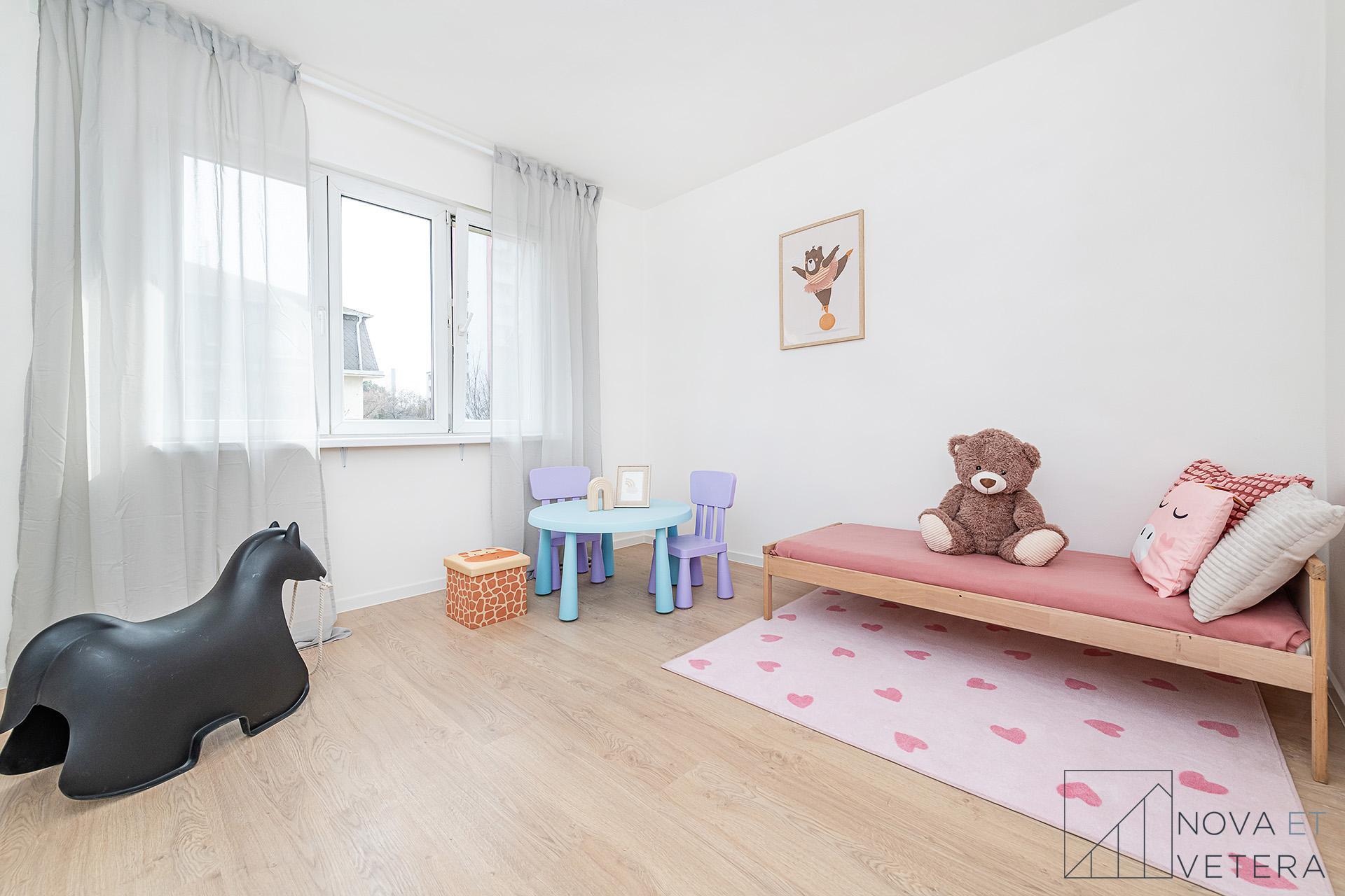 Dispozice bytu nabízí prostorný obývací pokoj s kuchyňským koutem a tři samostatné pokoje, které lze využít jako ložnici, dětský pokoj nebo pracovnu. Dále byt disponuje koupelnou s vanou, samostatnou toaletou, technickou místností, která může sloužit i jako komora a vstupní chodbou s dostatkem místa pro úložné řešení.