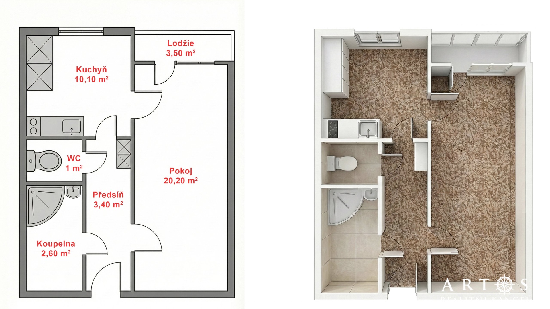 - Dispozice bytu: 1+1