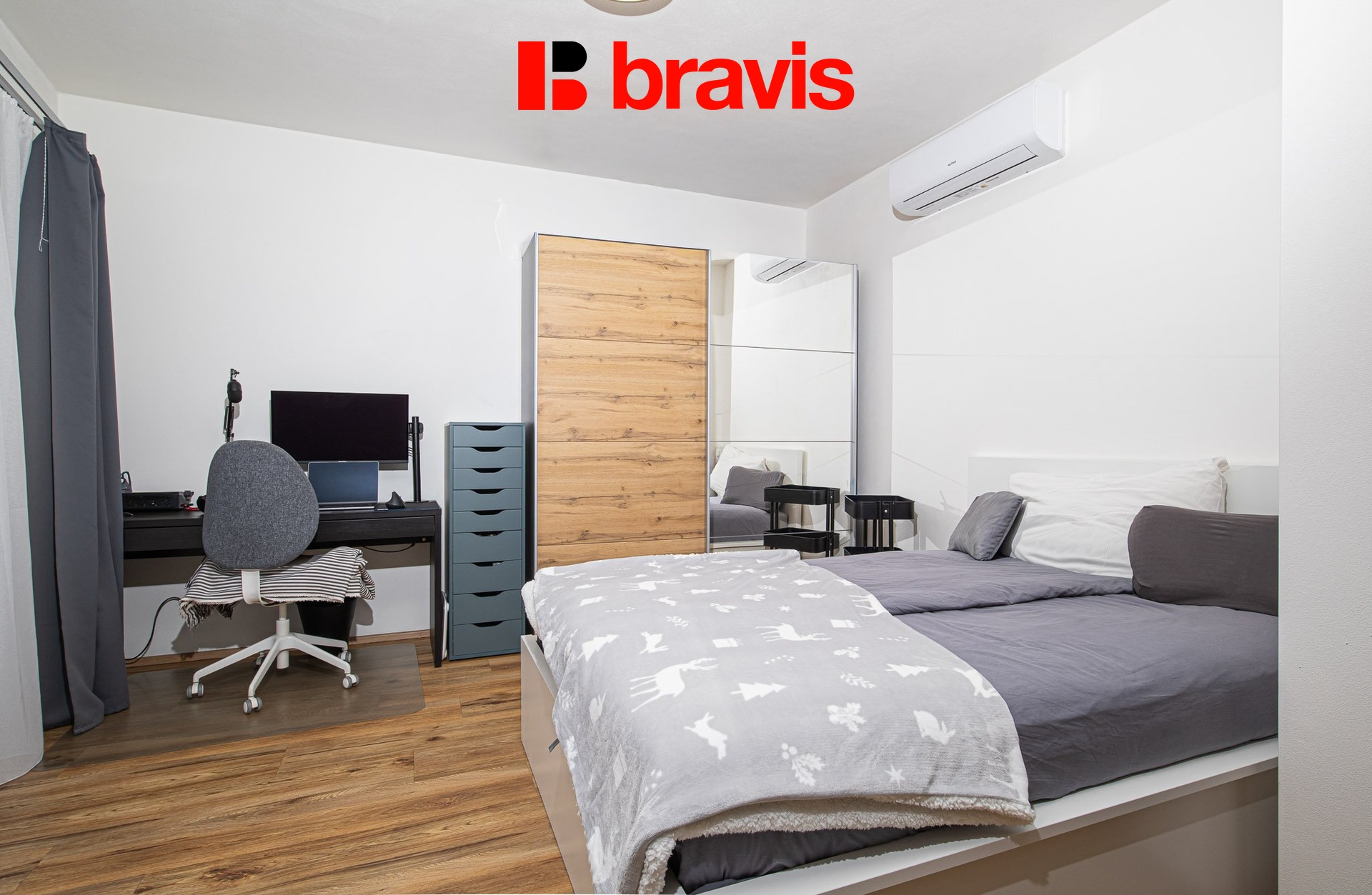 Velkým benefitem bytu je klimatizační jednotka, která umožňuje pohodlnou regulaci teploty během celého roku. O tepelný komfort se dále stará podlahové vytápění.