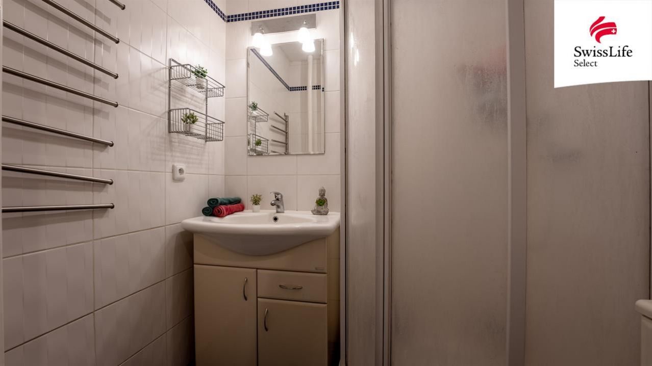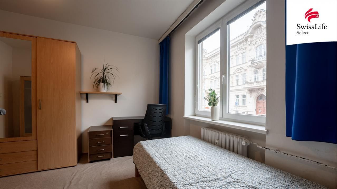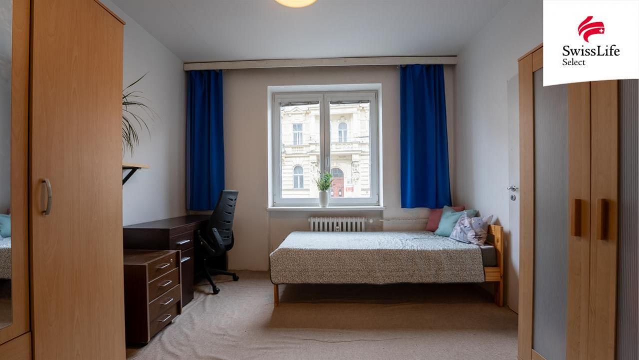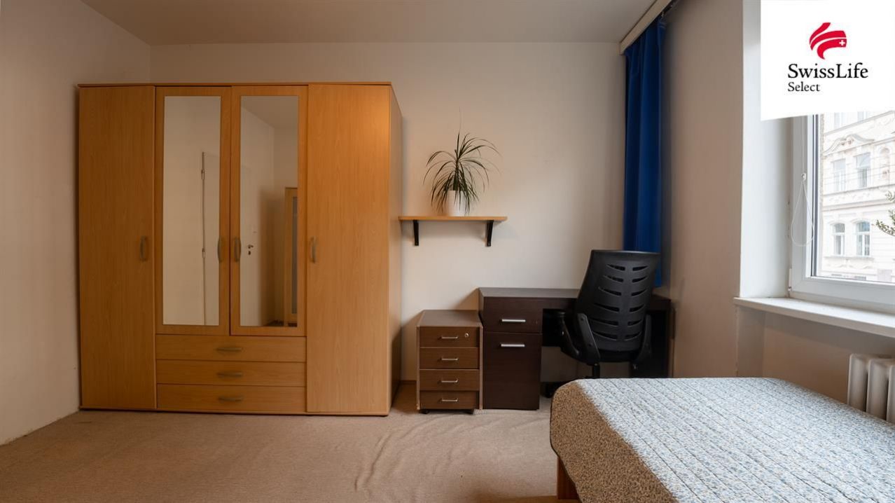 Prostorný pokoj s balkonem je orientovaný do vnitrobloku, kde je možné také parkovat. Na chodbě je vestavěná skříň s botníkem a v suterénu samostatný sklep. V obou obytných místnostech najdete dřevěné parkety, které dodají bytu jedinečný styl.