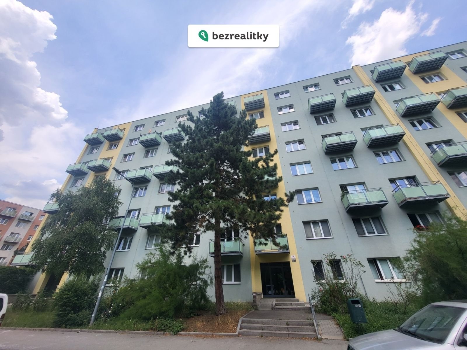 Před bytovým domem se nachází parkoviště, krásný park, posilovna a potraviny.