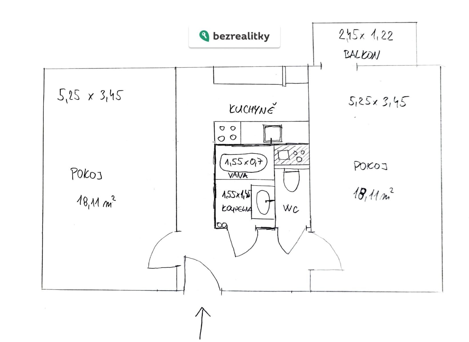- Dispozice bytu: 2+1