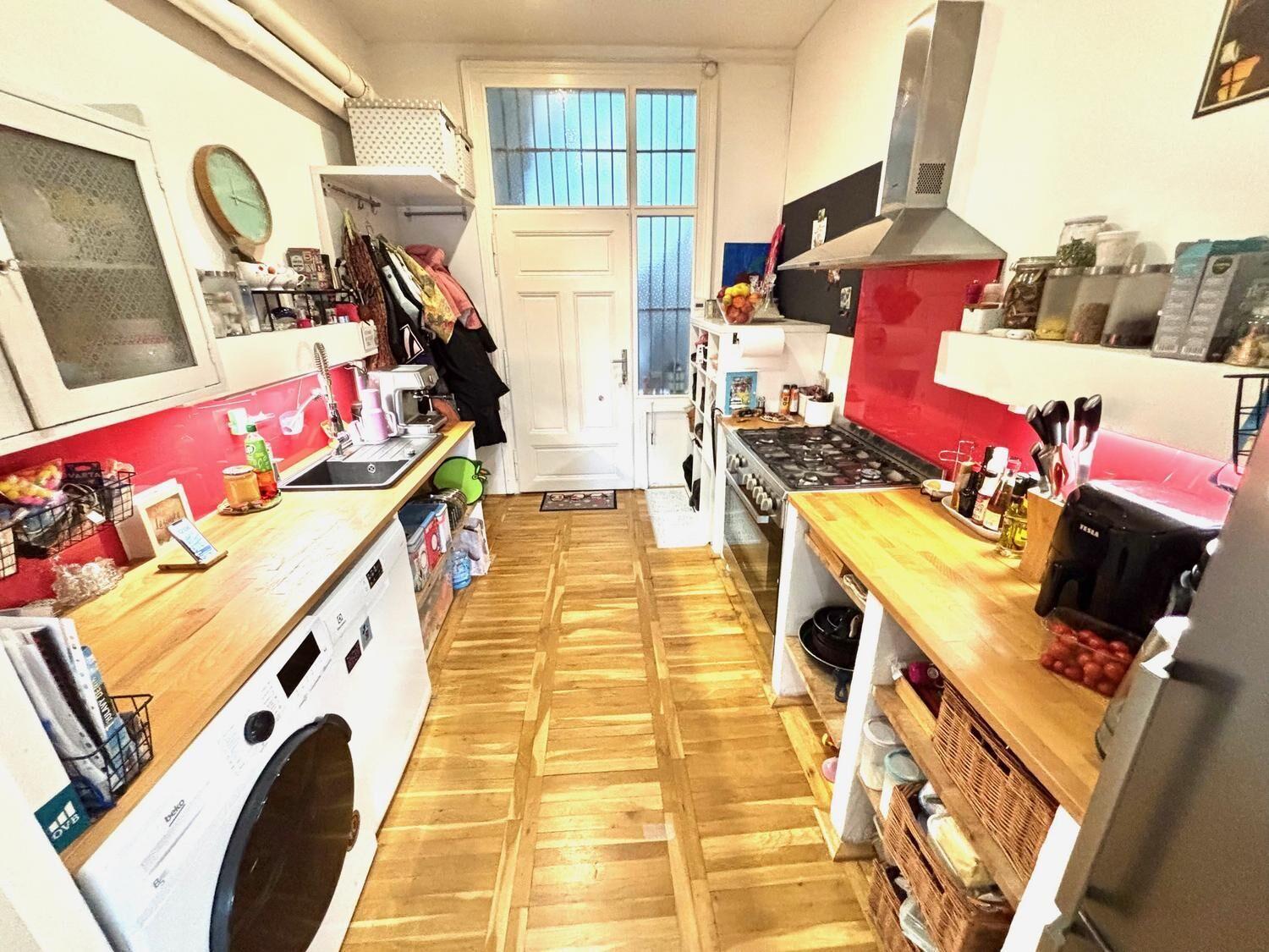 Ložnice 10m2 s vestavěnou manželskou postelí s úložnými prostory pod. Koupelna s vanou WC 3,5m2. Kuchyně 11,4 m2. K bytu náleží komora 1,3 m2 na patře u bytu. Je možné využívat balkon 3m² na chodbě dobu s orientací do zeleného vnitrobloku. Sdílený sklep 40m2.