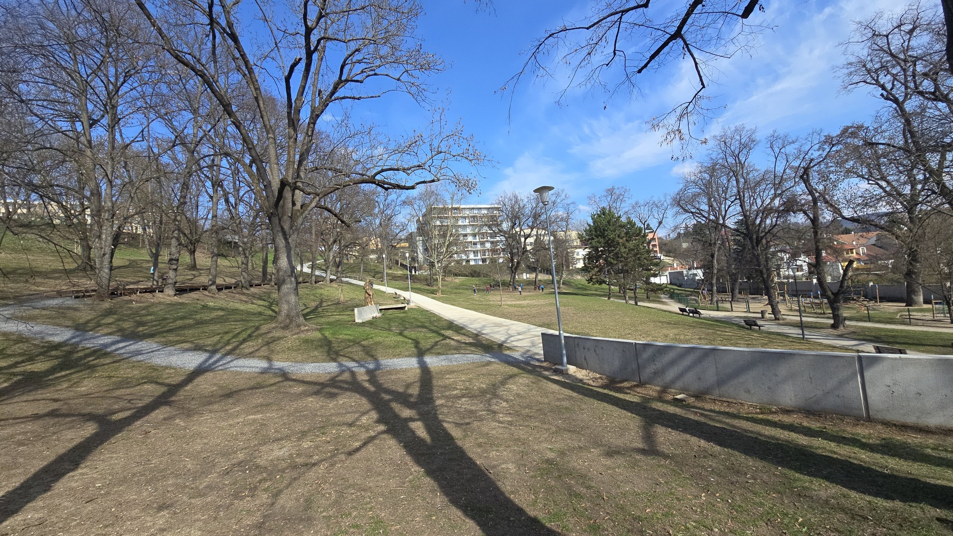 Velký, nově zrekonstruovaný park jen 50 metrů od domu a rychlé spojení do centra.