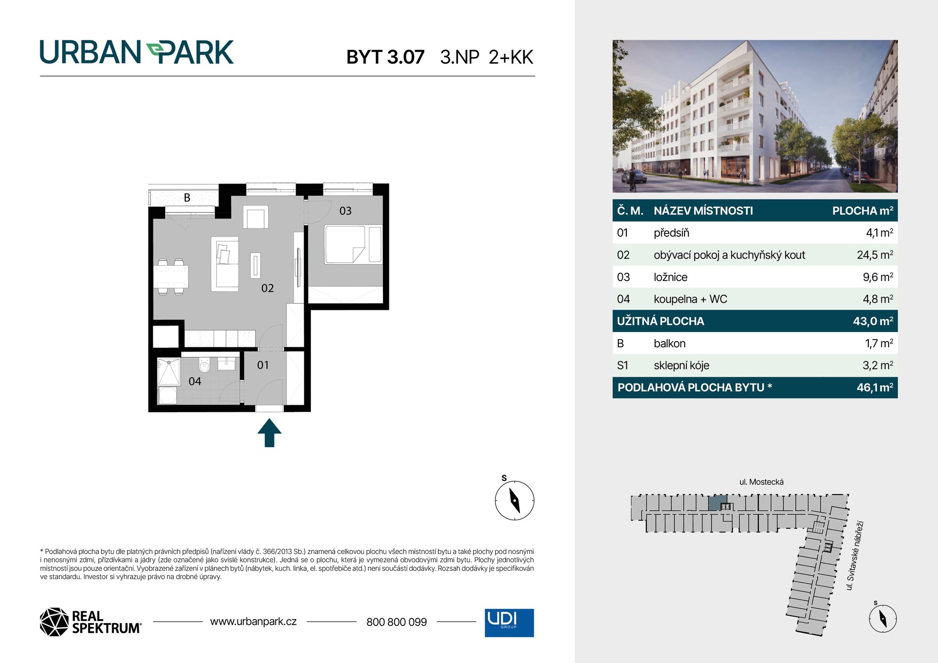 | Dispozice/podlahová plocha: | 2+kk/46 m² |