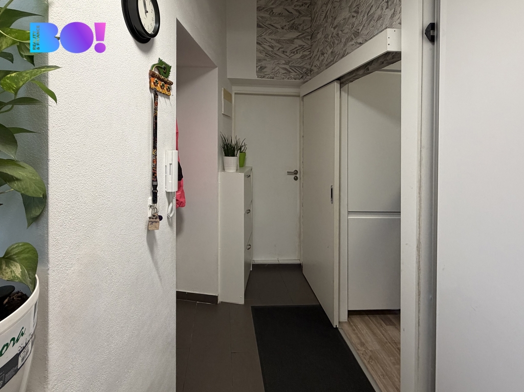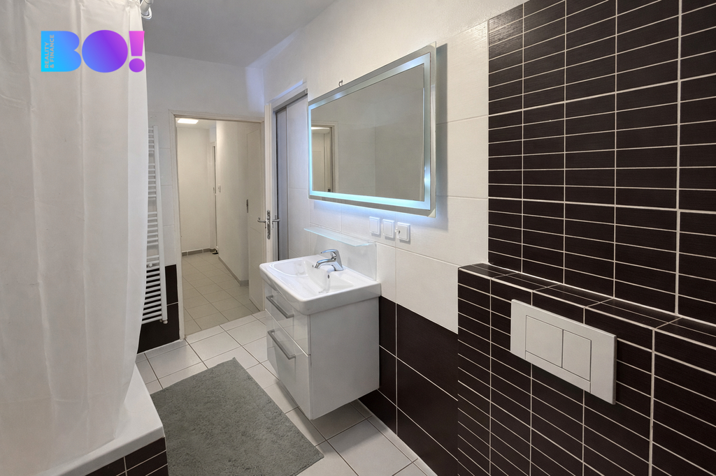 Okna bytu jsou orientována na západ a do klidného vnitrobloku, což zajišťuje dostatek přirozeného světla a nerušené bydlení bez hluku z přilehlé ulice.