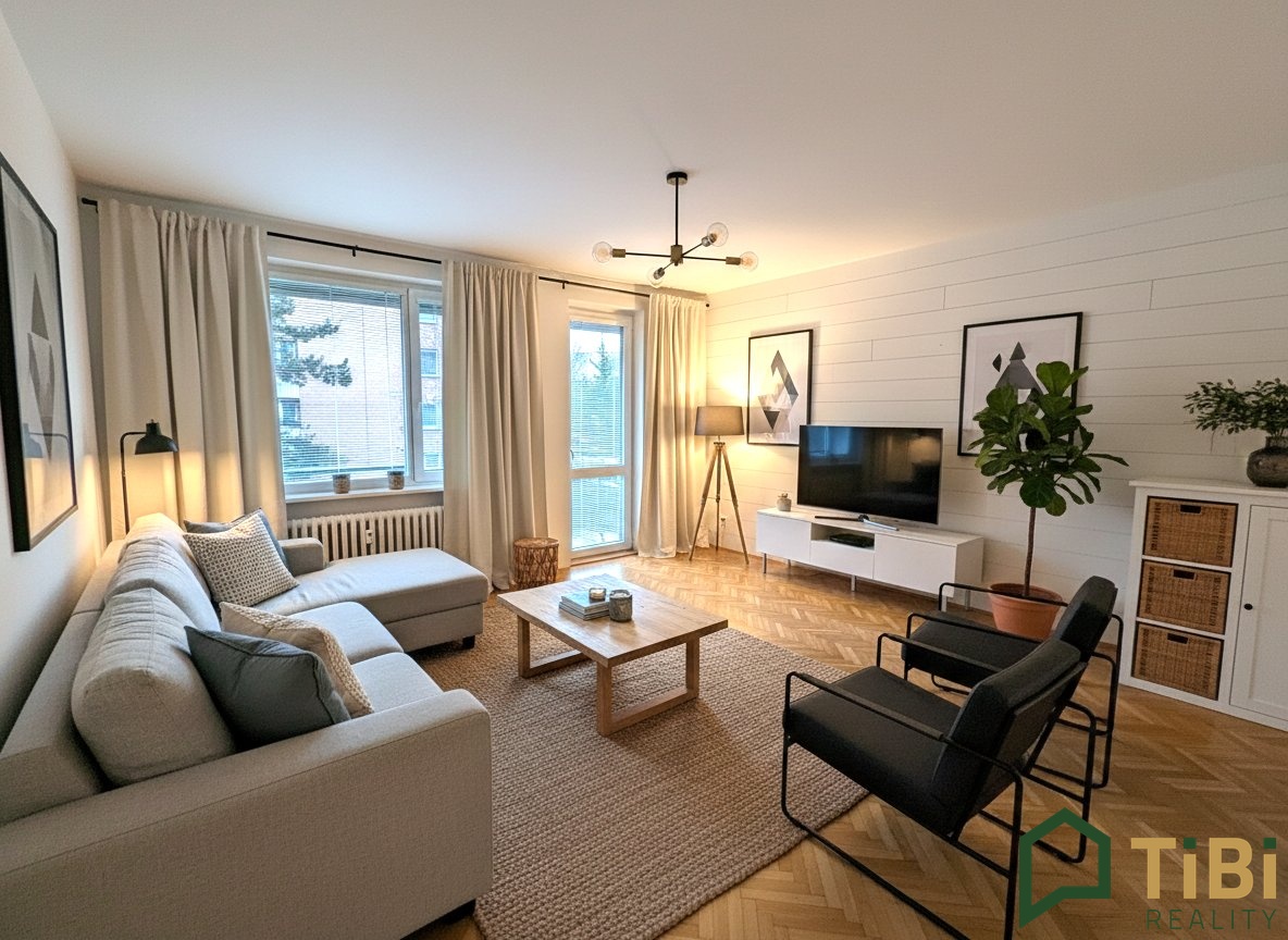 Samotný byt leží ve druhém nadzemním podlaží, je zrekonstuován před osmi roky- nové odpady, omítky, rozvody v elektřiny v mědi, dveře koupelna, plastová okna, snímatelné obložky u dveří zajistí jejich snadnou výměnu. Na zemi jsou položeny parkety a dlažba.
