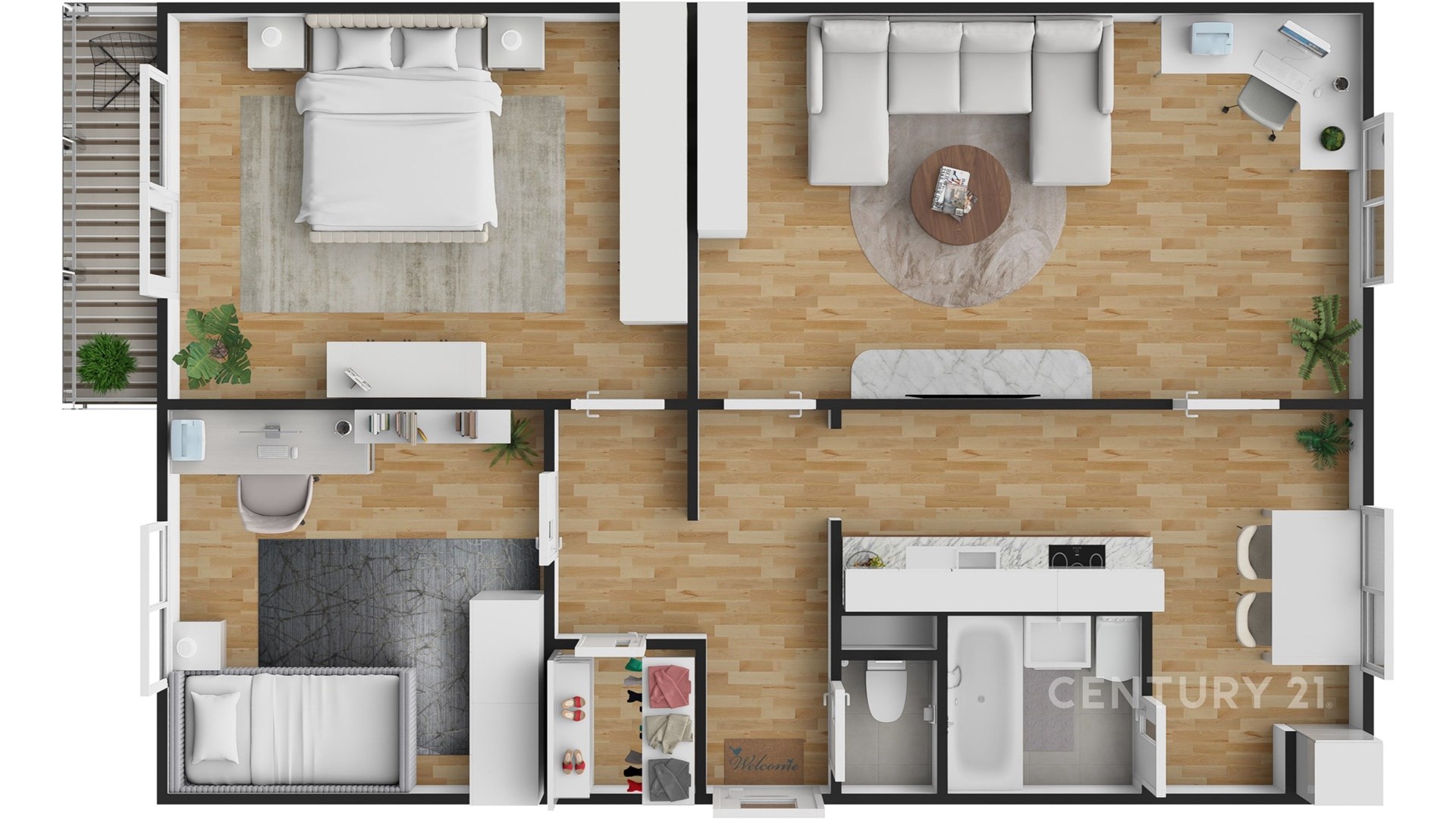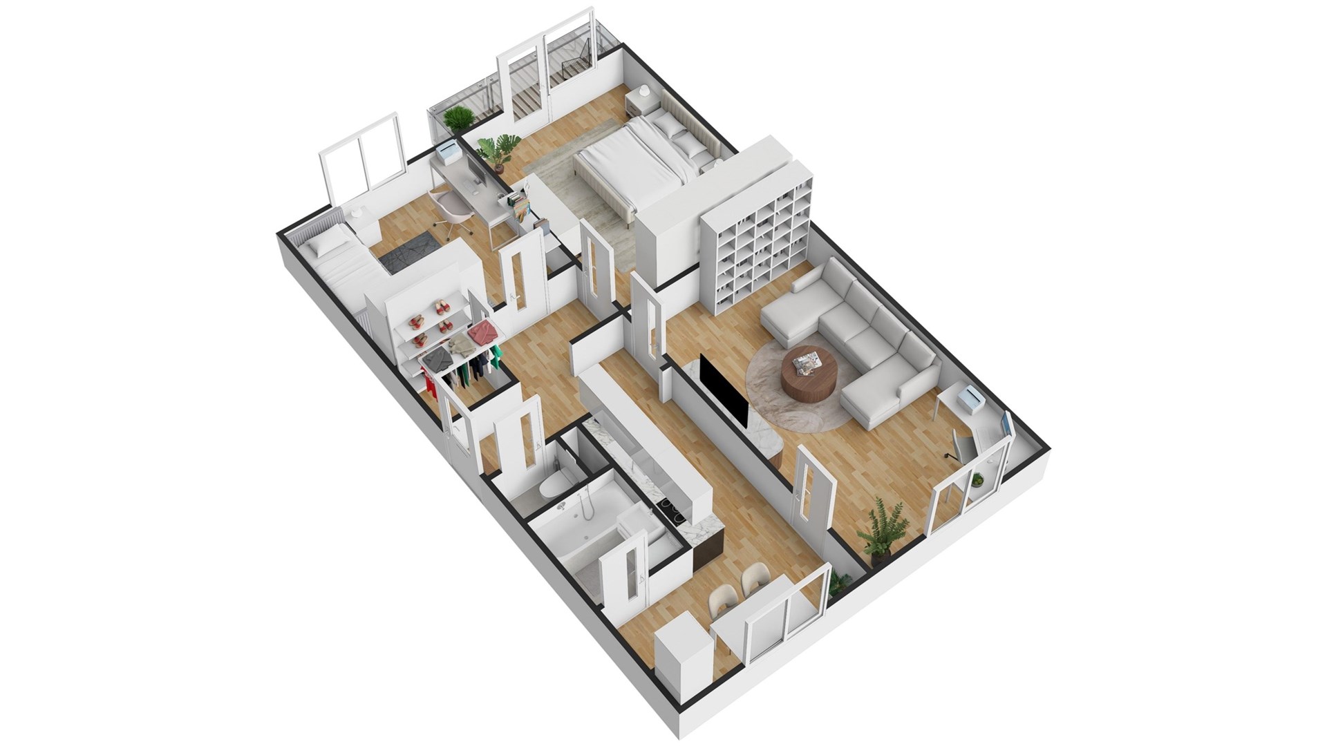 Dispozice bytu zahrnuje prostorný obývací pokoj, dvě samostatné ložnice, kuchyni, chodbu, koupelnu a oddělené WC. Velkou výhodou bytu je praktická komora přímo v bytě, která poskytuje dostatek úložného prostoru. K bytu náleží také sklep.