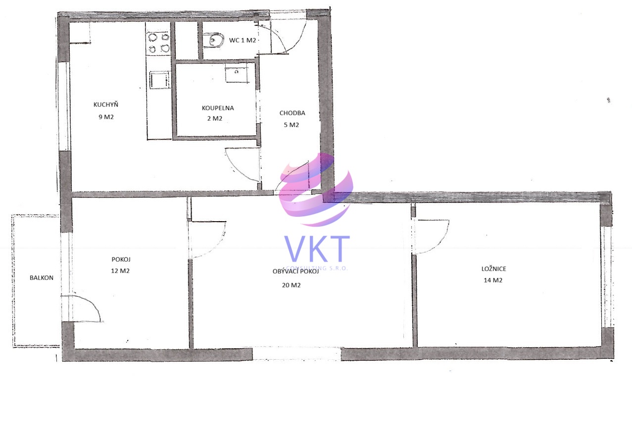 - Příslušenství: K bytu náleží sklep (1 m²).balkon (2 m²)