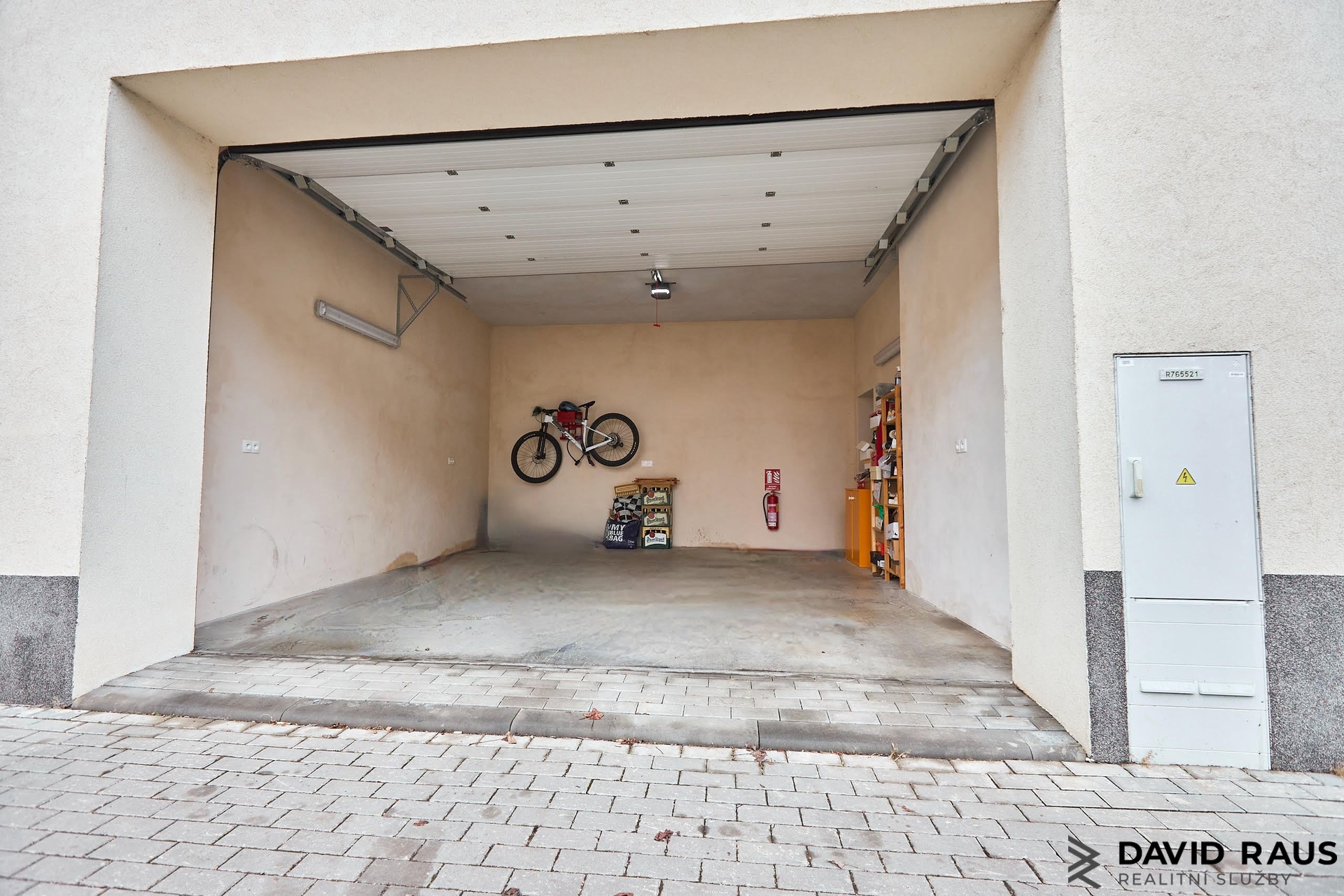 K bytu náleží prostorná dvougaráž s elektrickými vraty na dálkové ovládání o šířce 4,96 m, hloubce 5,60 m a výšce 3,198 m, přičemž zadní část garáže je od poloviny rozšířena na 5,24 m. Součástí prodeje je také zděný sklep.