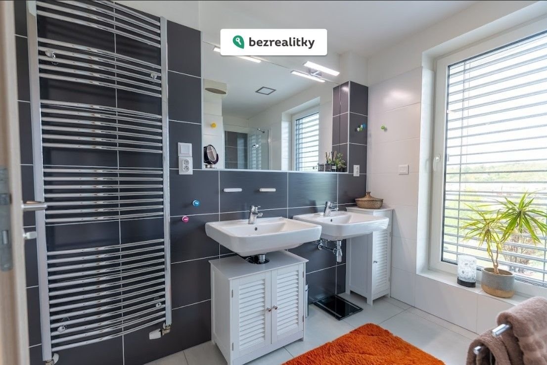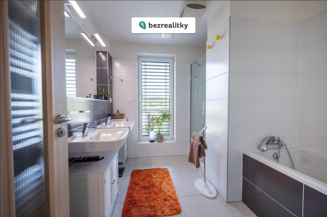 • Prostorná koupelna s vanou, sprchovým koutem a dvěma umyvadly. Samostatné WC.
