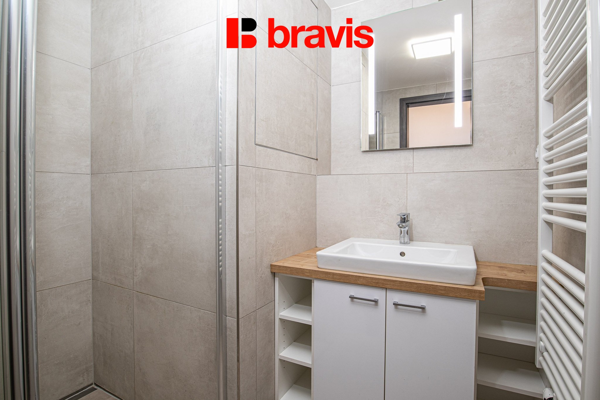 Částečně zařízený byt je vybaven kuchyňkou linkou s veškerými spotřebiči - lednice s mrazákem, myčka, el. trouba, mikrovlnná trouba, indukční varná deska a digestoř.