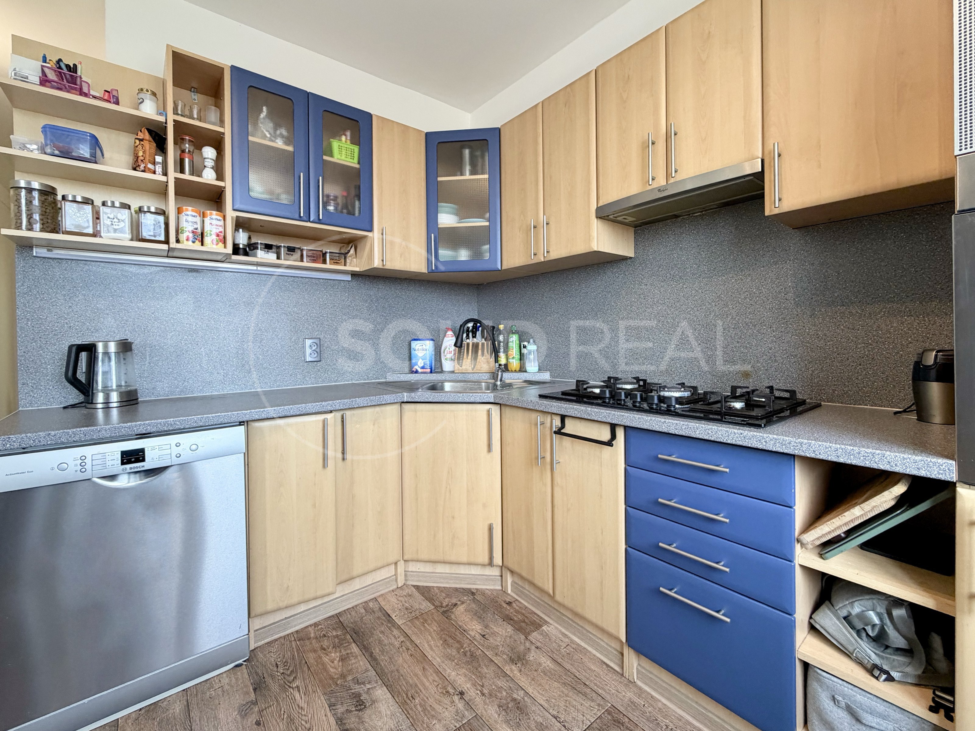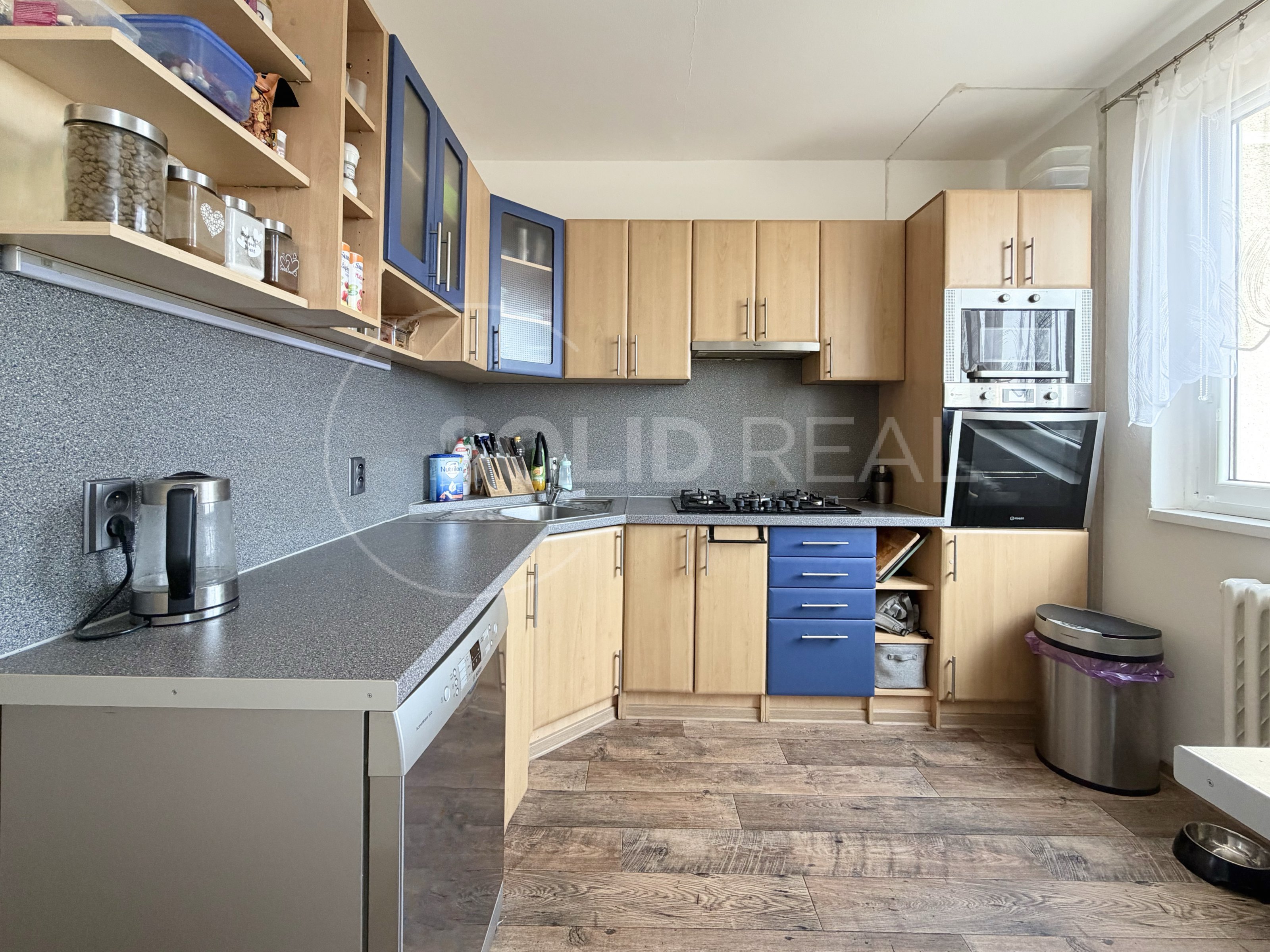 • Interiér: V bytě byla před dvěma lety instalována moderní kuchyňská linka a položena nová podlaha. Interiér je čistý, světlý a vkusně udržovaný.